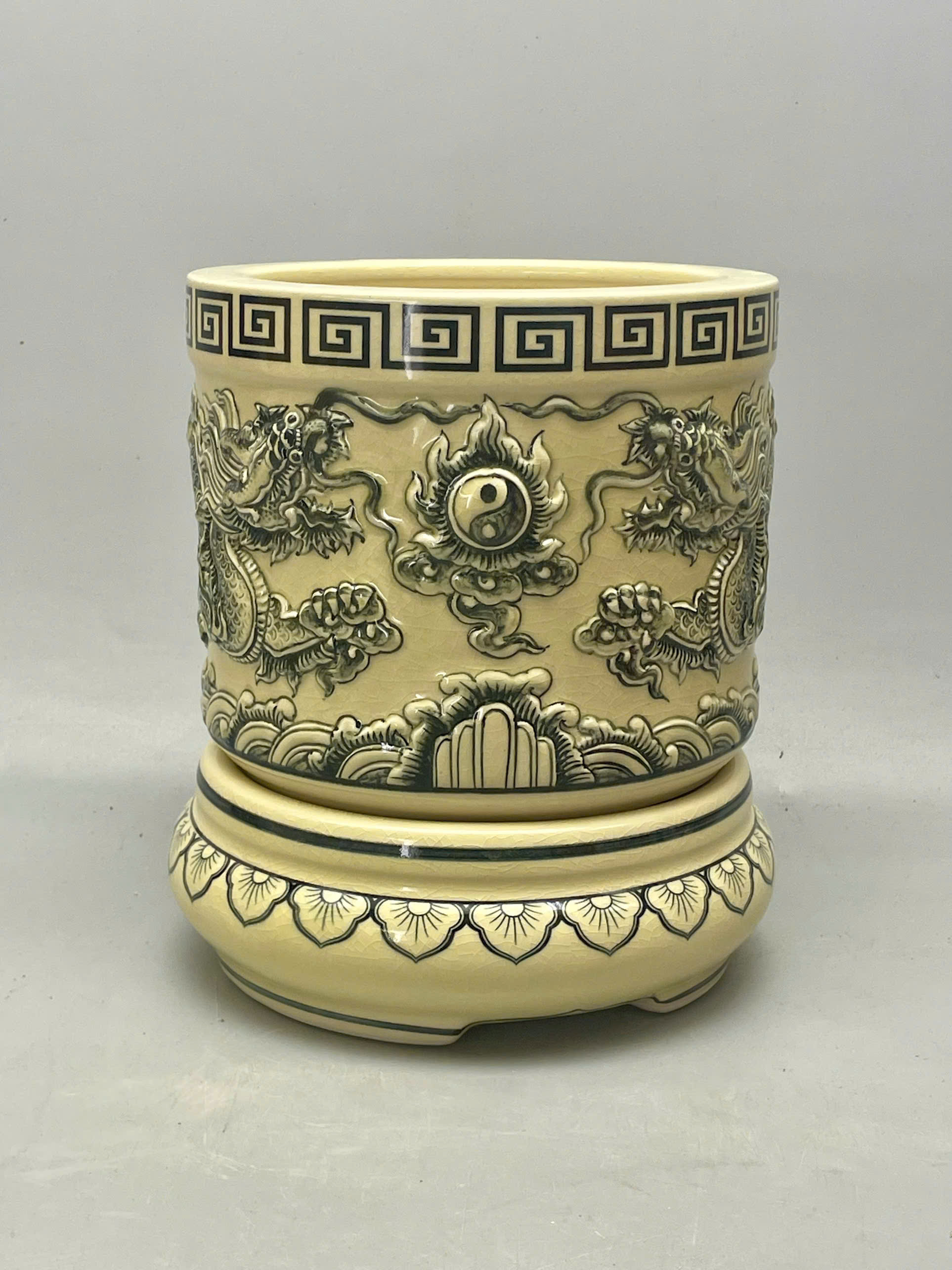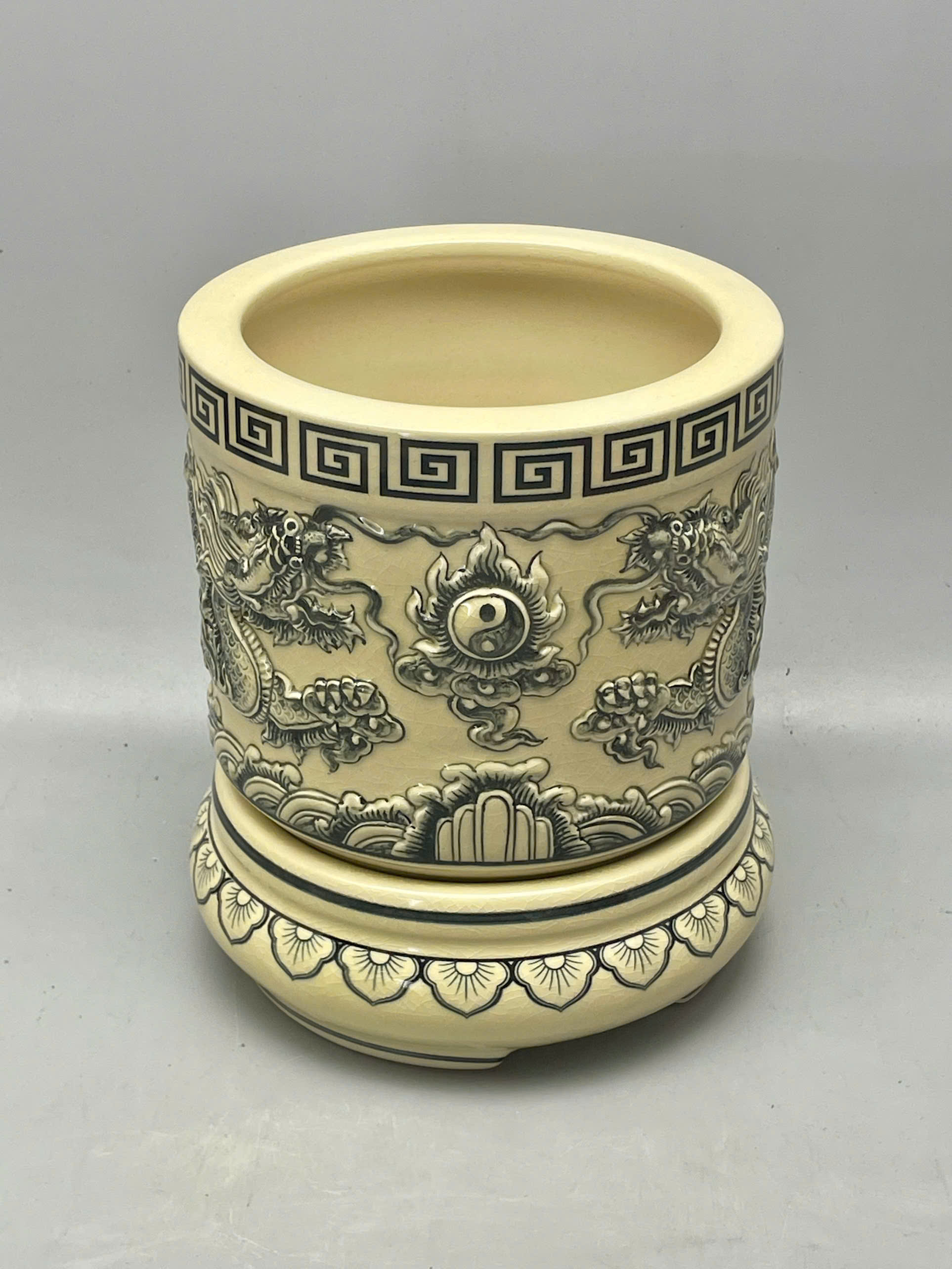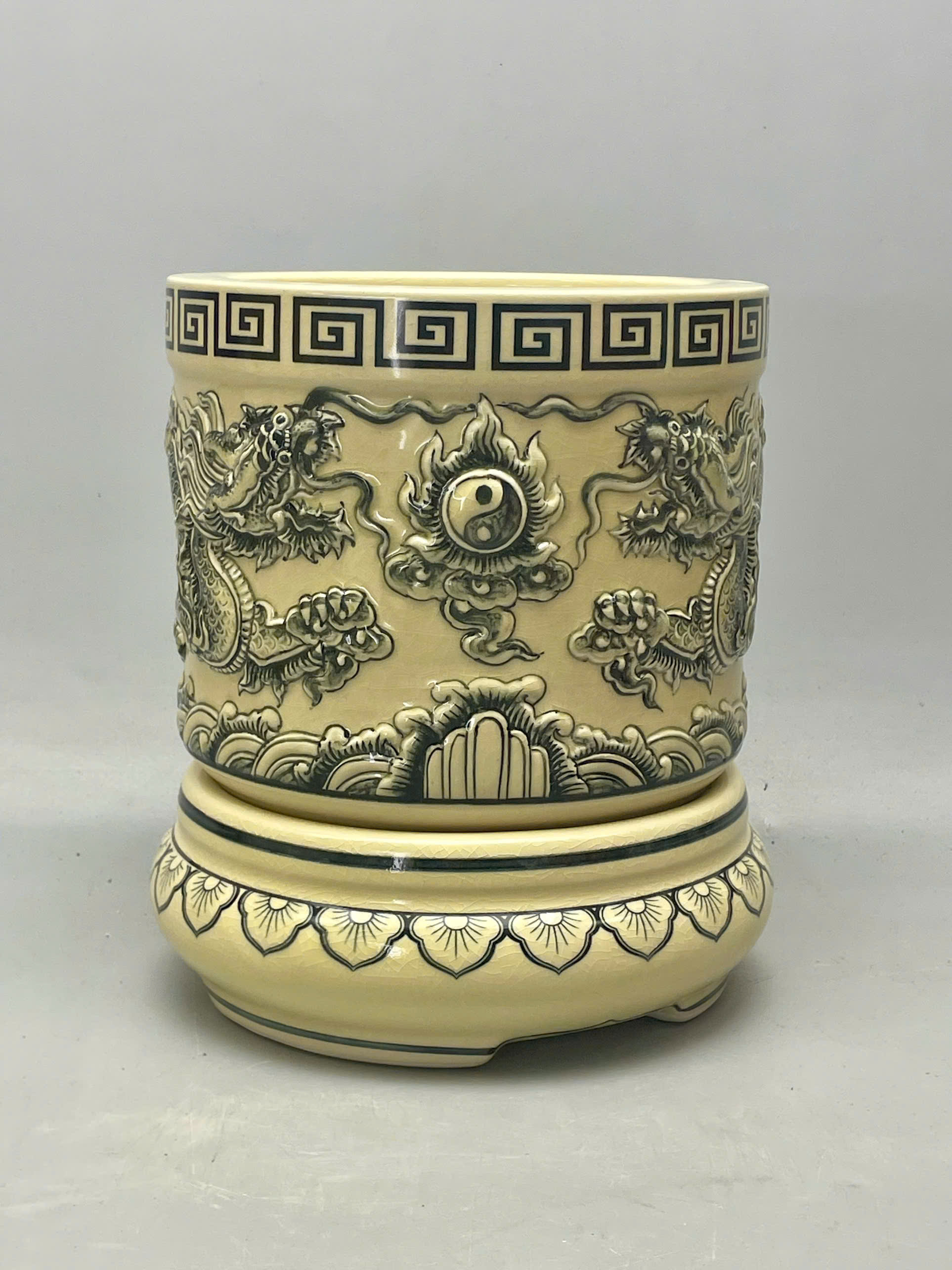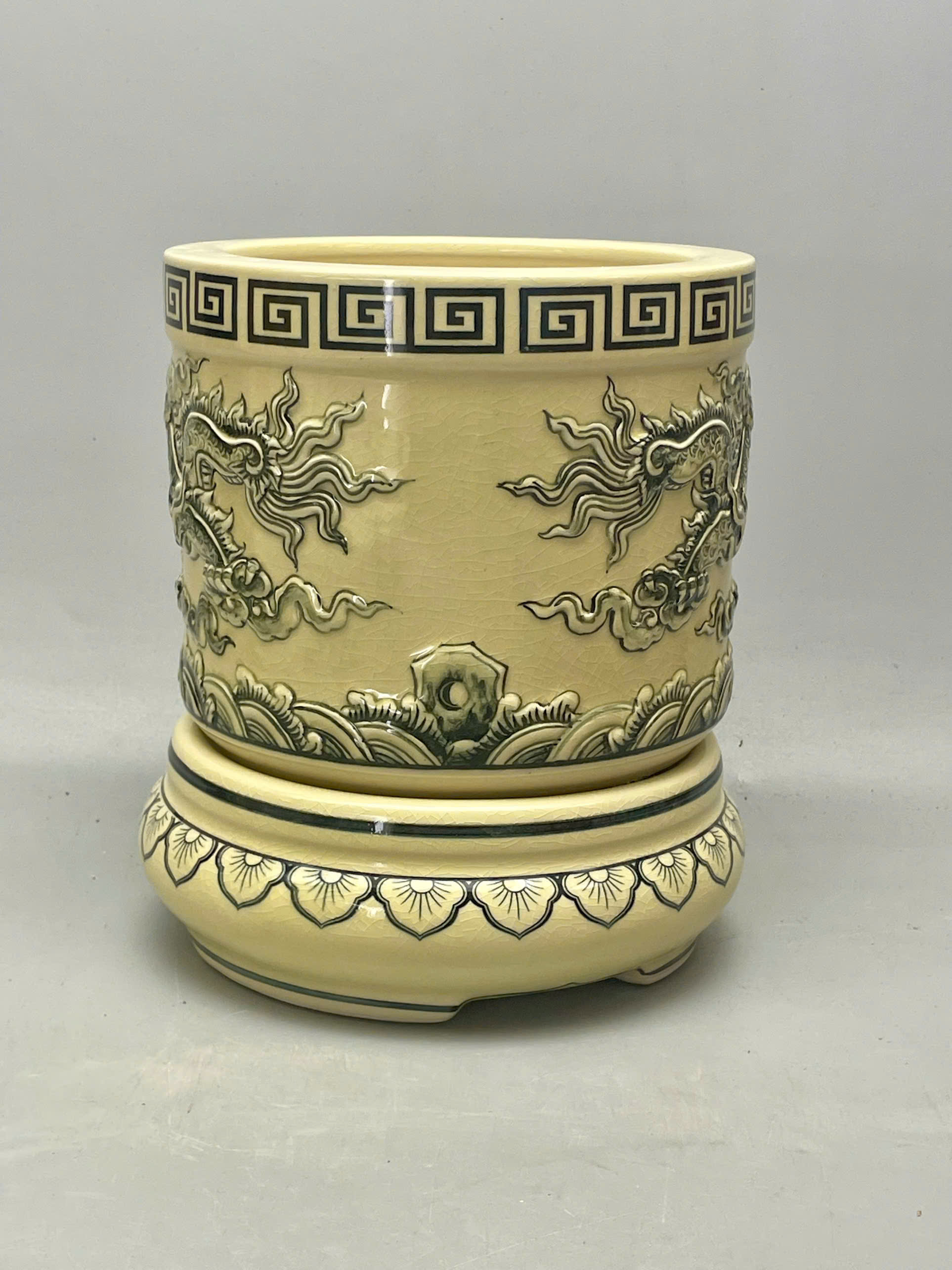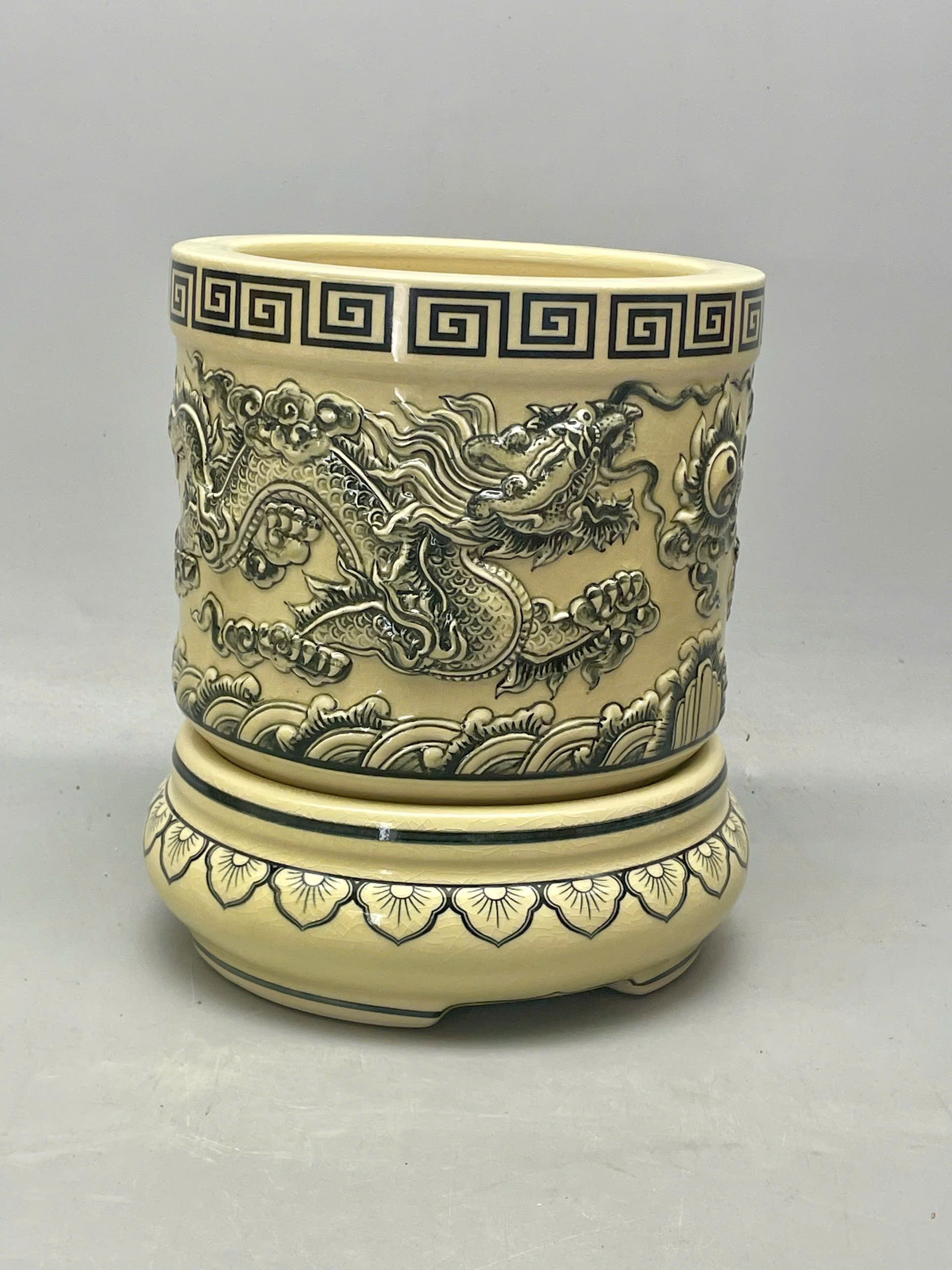 Bát hương đắp nổi họa tiết rồng gốm Chu Đậu truyền thống