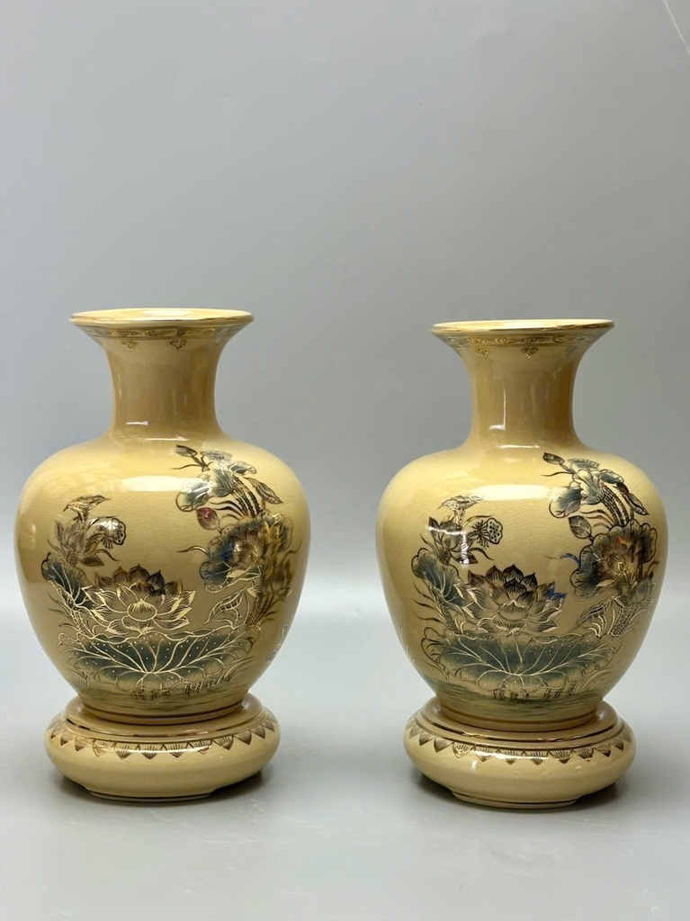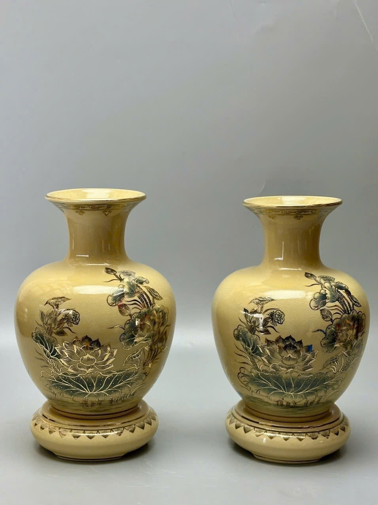 Bình Bảo Châu hoa sen vẽ vàng 24k là sự kết tinh giữa nghệ thuật gốm truyền thống Chu Đậu và kỹ thuật chế tác hiện đại, tạo nên một vật phẩm trang trí sang trọng, tinh tế và đầy ý nghĩa phong thủy.