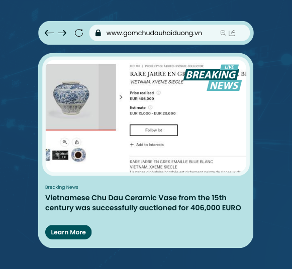 - Sự thành công này làm nhiều họa sĩ Việt háo hức và tự hào về cổ vật Việt được đánh giá cao trên sàn quốc tế.