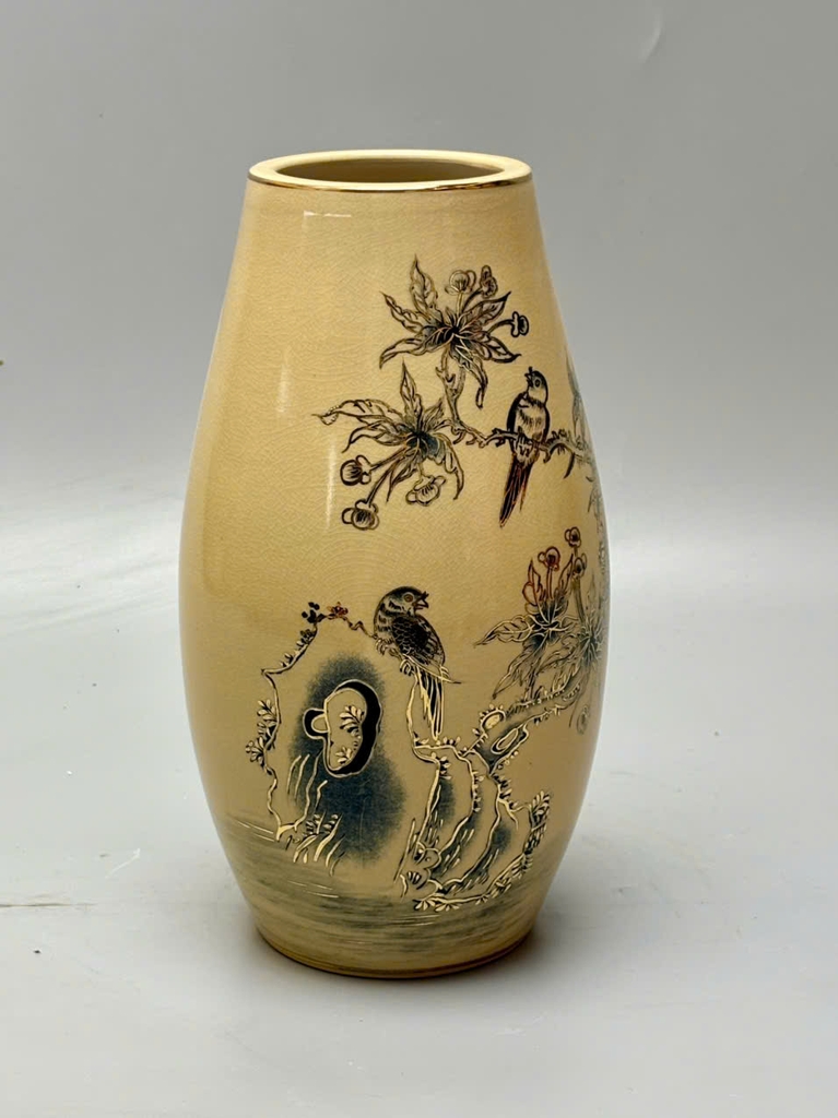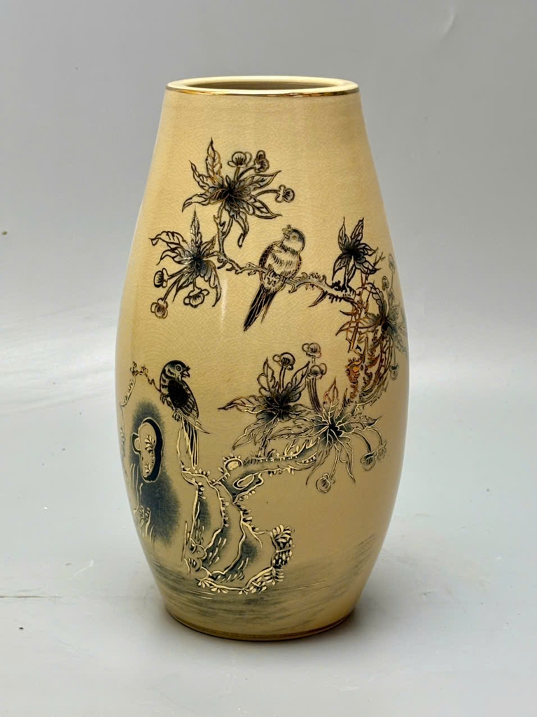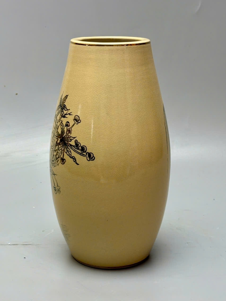 🏺 Bình Hoa Dáng Bầu Vẽ Chim Sẻ Hoa – Gốm Chu Đậu Vẽ Vàng 24K