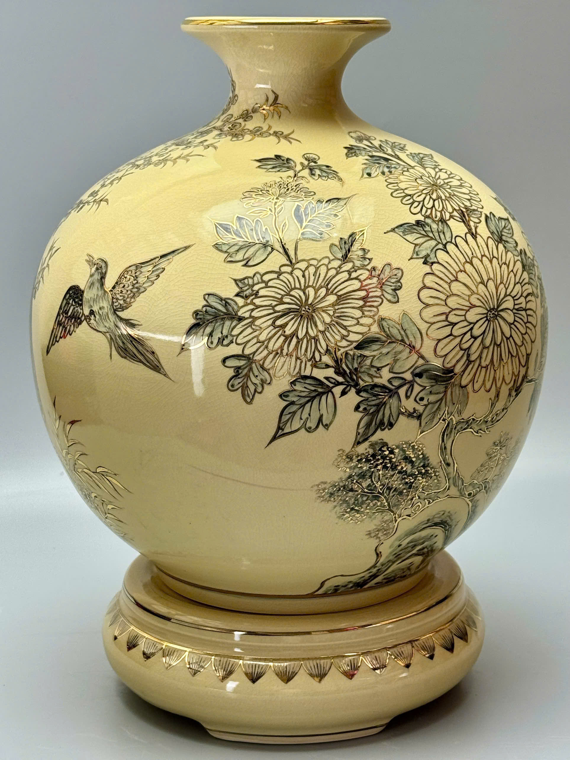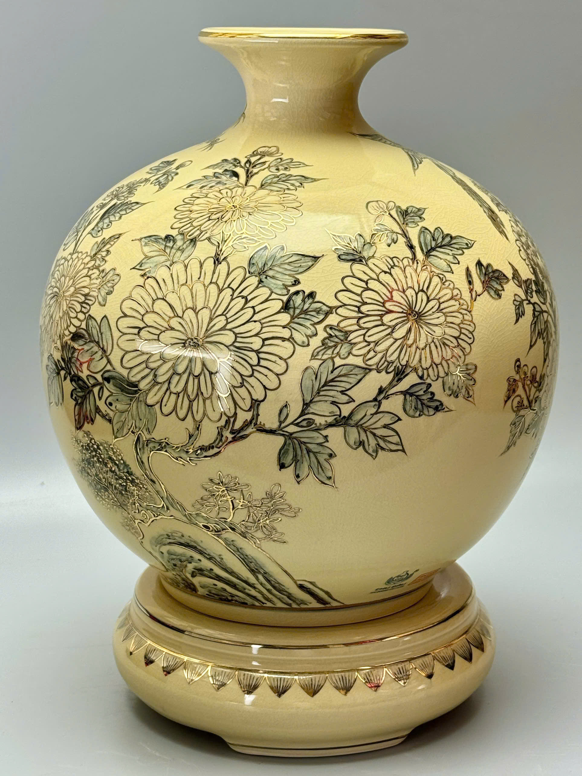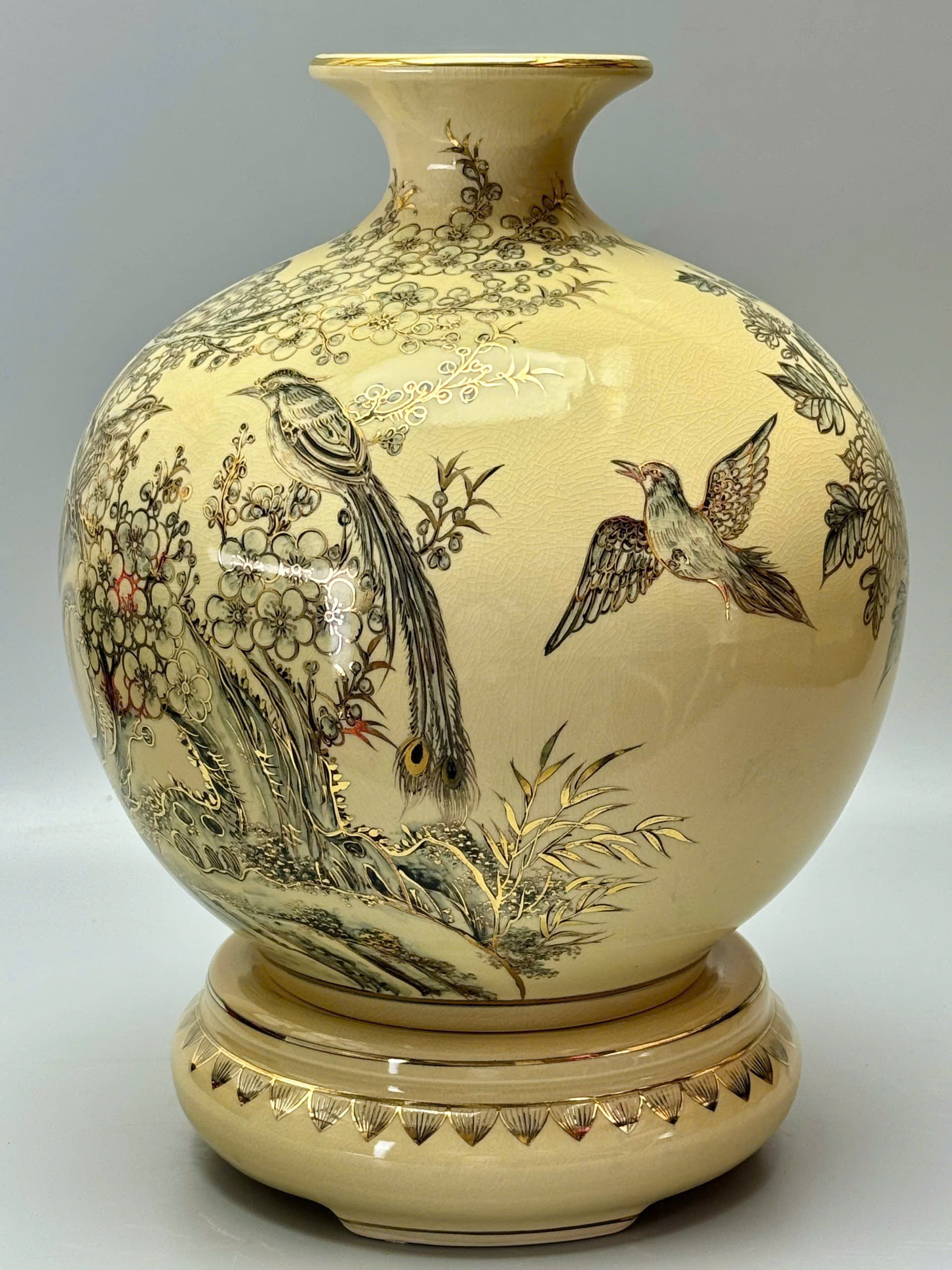Từ khóa chính: bình hút tài lộc chim đào, gốm Chu Đậu, vẽ vàng 24K, bình phong thủy, men rạn cao cấp