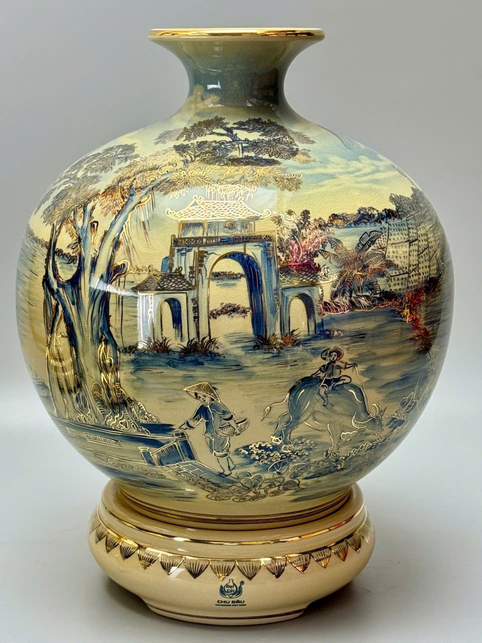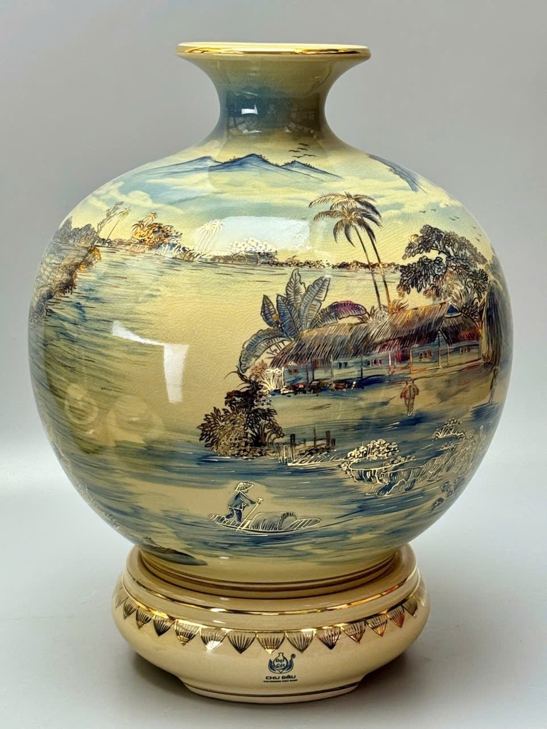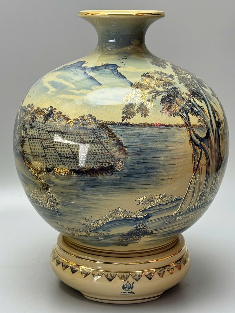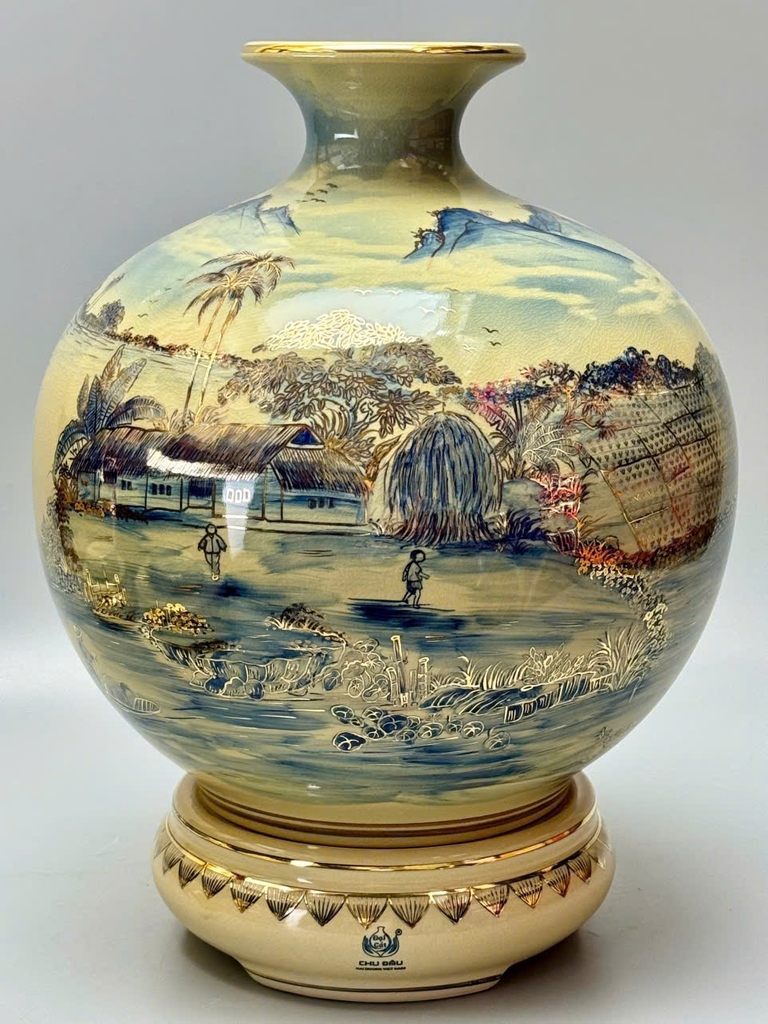 🏺 Bình Hút Tài Lộc H35 & H40 – Làng Quê Sơn Thủy Hữu Tình Vẽ Vàng 24K