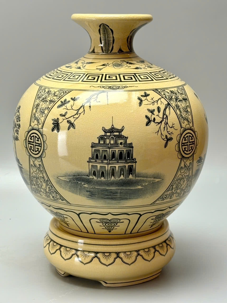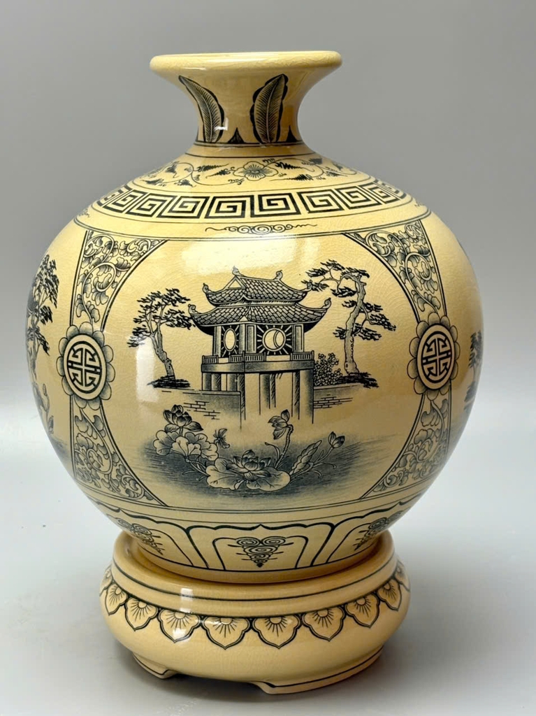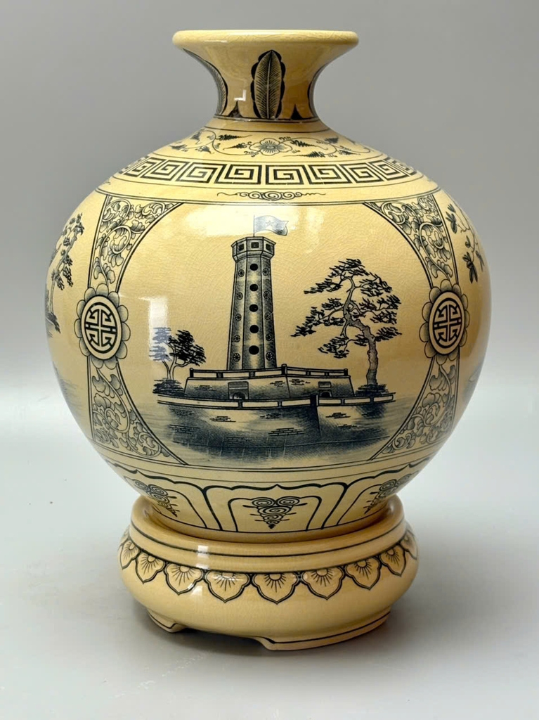 🌟 Bình hút tài lộc Tứ Cảnh Hà Nội H30 gốm Chu Đậu truyền thống là một tuyệt phẩm gốm sứ mang đậm dấu ấn văn hóa Thủ đô và nghệ thuật thủ công Việt Nam.