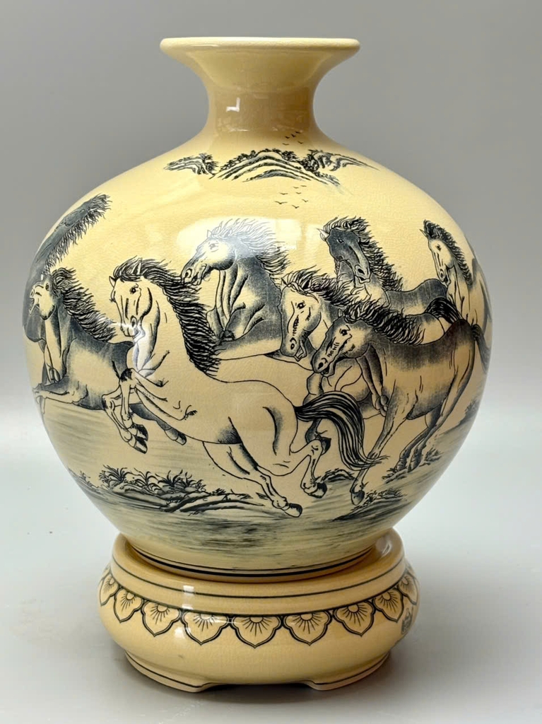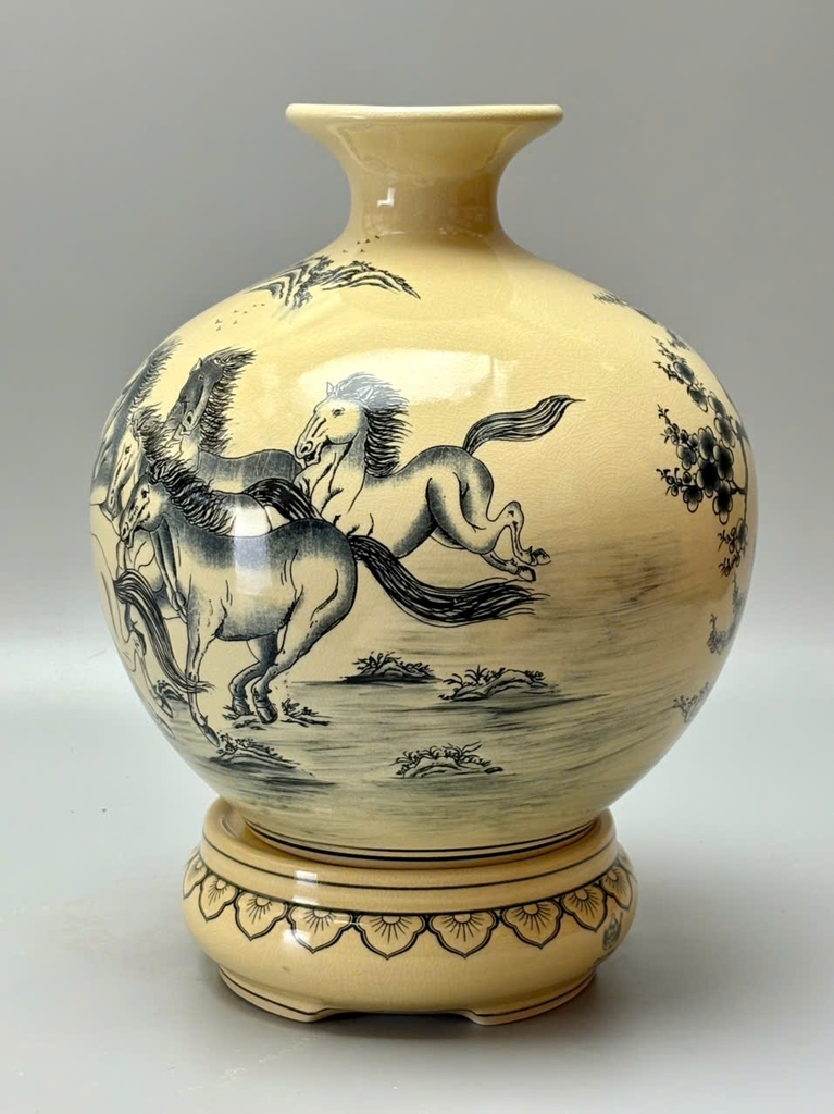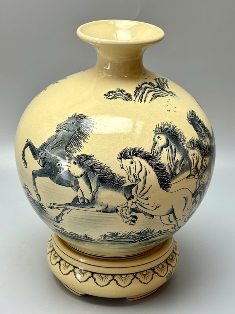 Bình Hút Tài Lộc Mã Đáo Thành Công H30 – Gốm Chu Đậu Vẽ Truyền Thống