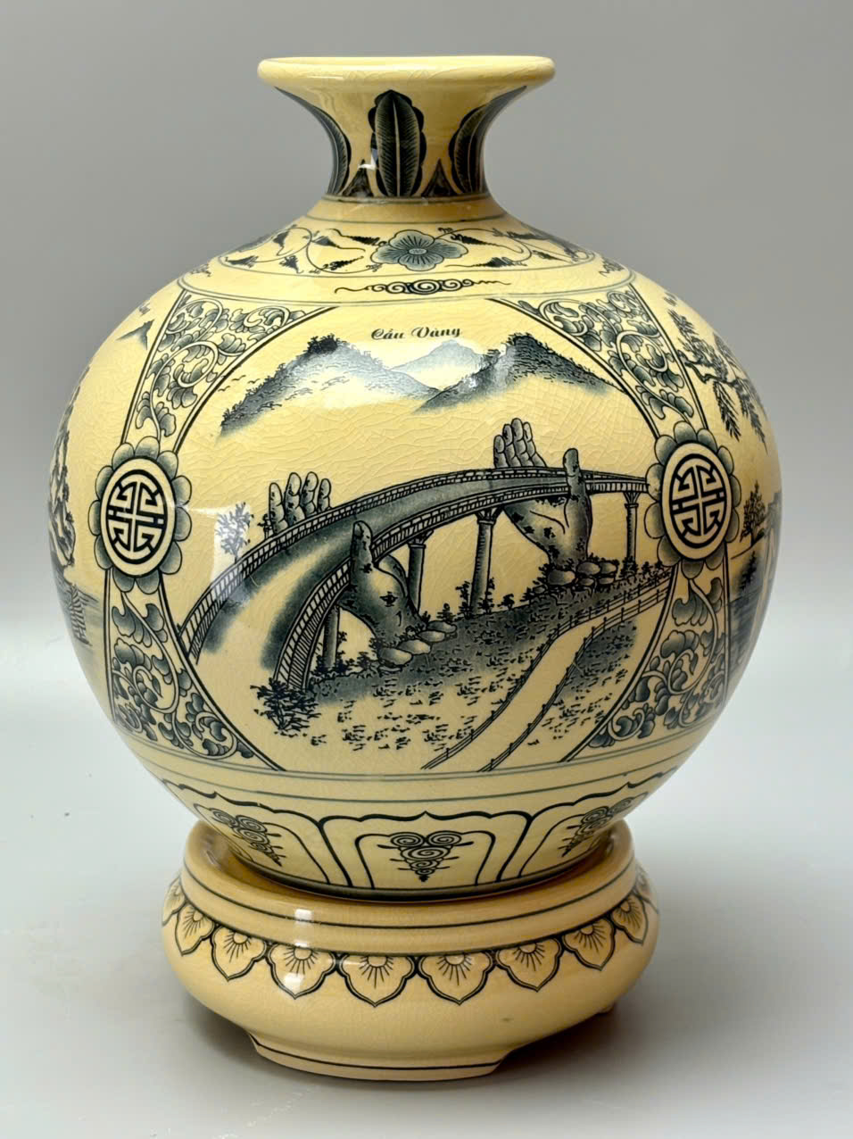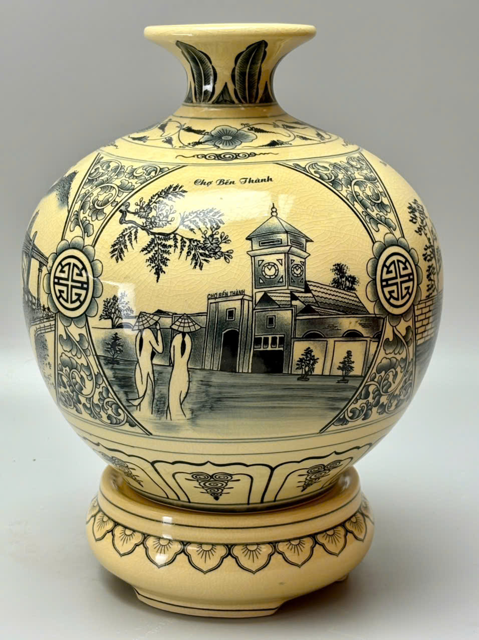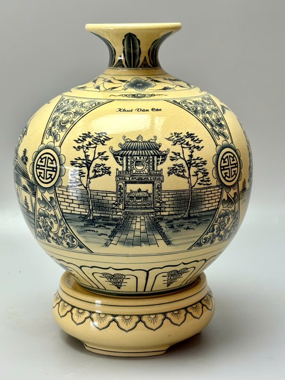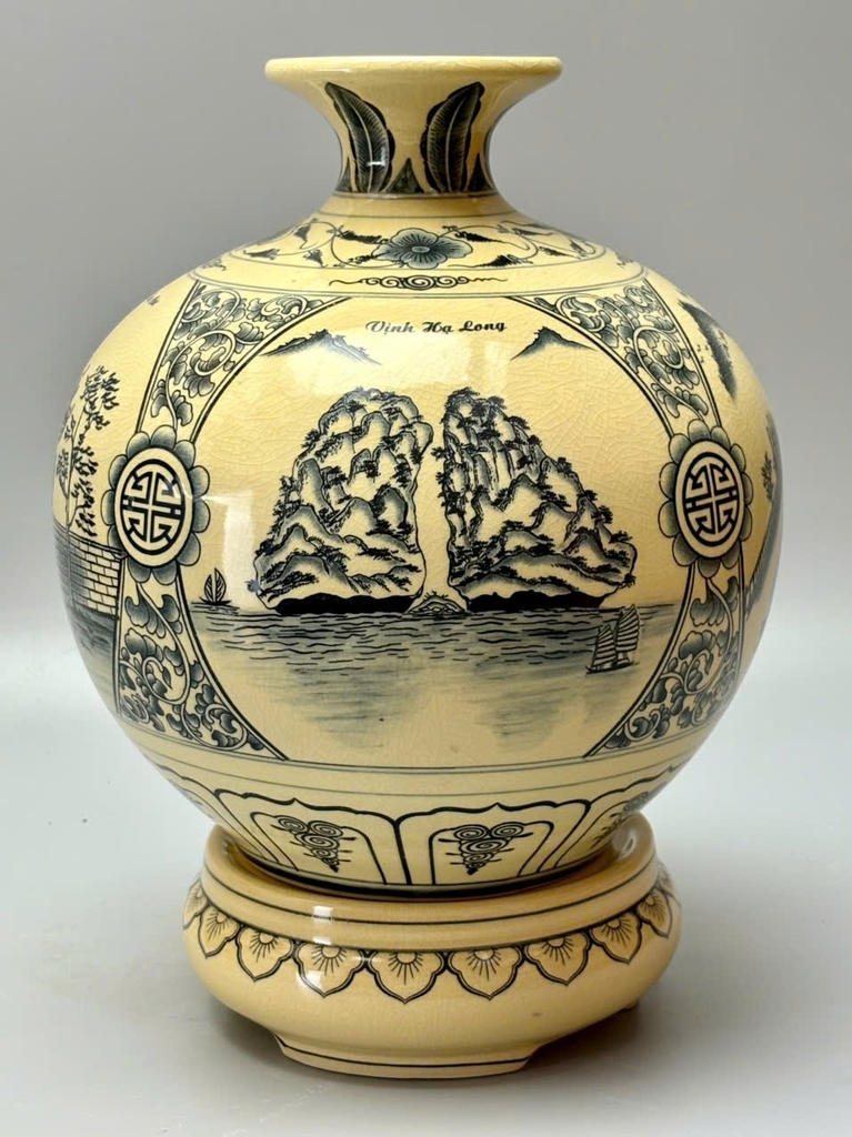 🌟 Bình hút tài lộc Tứ Cảnh Ba Miền H30 gốm Chu Đậu truyền thống là một tuyệt phẩm gốm sứ mang đậm bản sắc văn hóa Việt, kết hợp tinh hoa của ba miền Bắc – Trung – Nam qua các họa tiết đặc trưng.