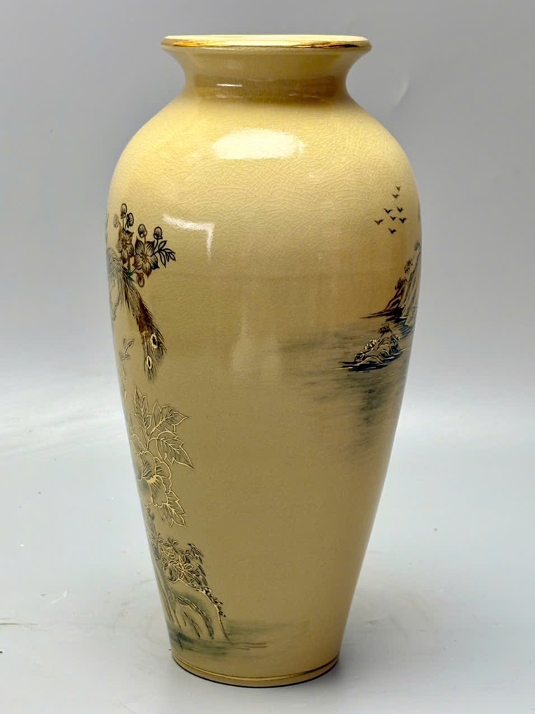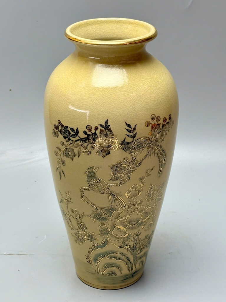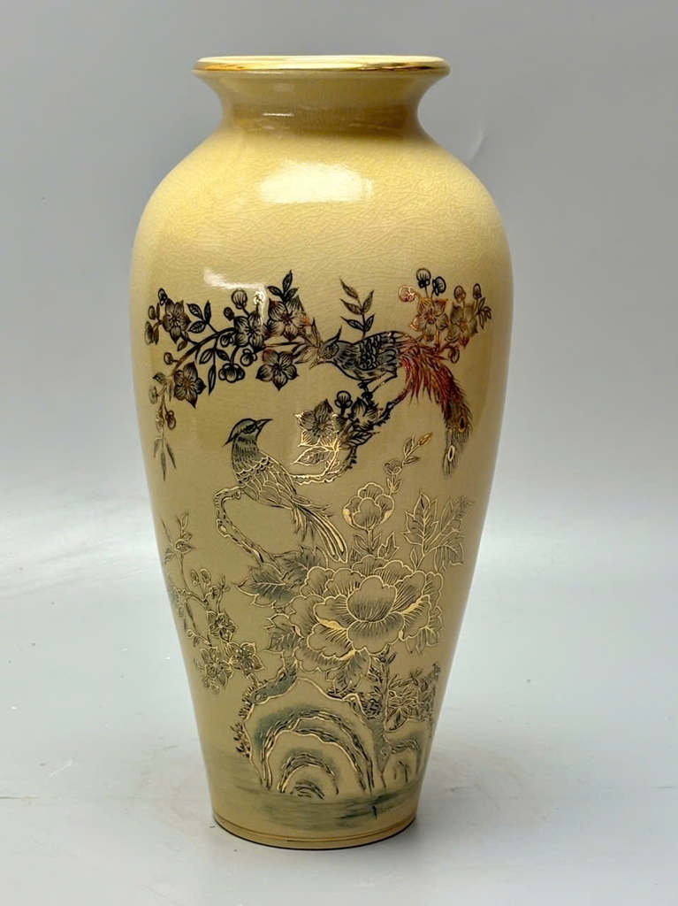 🏺 Bình Như Ý Chim Đào Gốm Chu Đậu Vẽ Vàng 24K – Cao 35cm