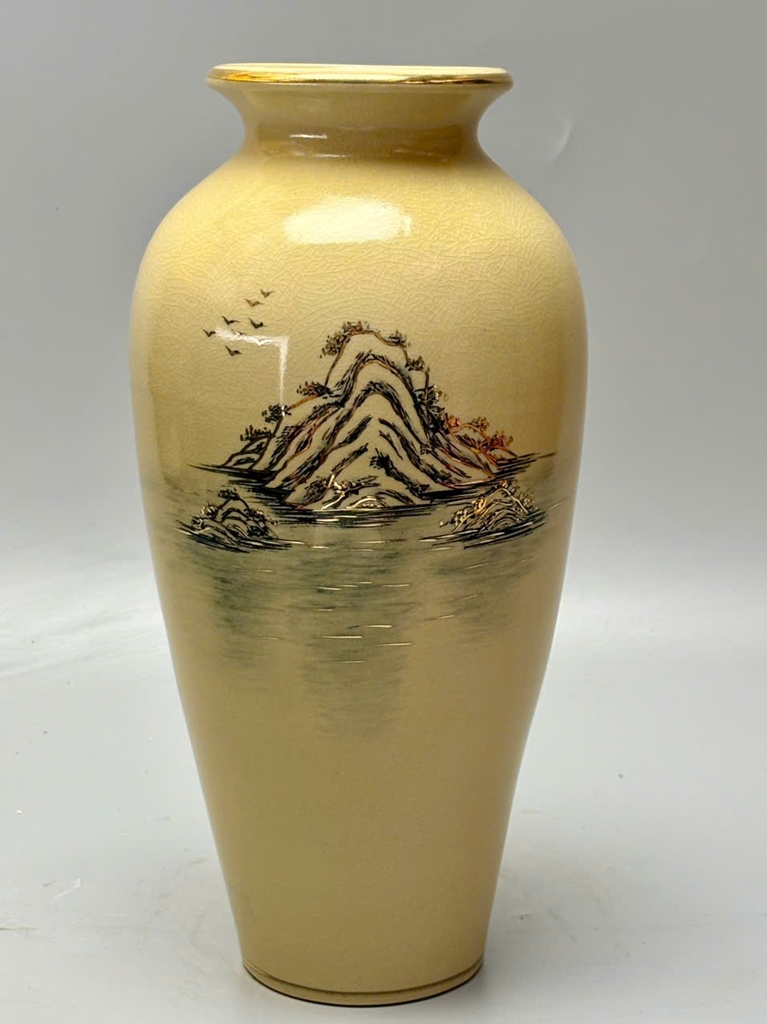 Bình Như Ý họa tiết chim đào là sự kết hợp hoàn hảo giữa nghệ thuật gốm truyền thống Chu Đậu và kỹ thuật vẽ vàng 24K tinh xảo. Với chiều cao 35cm, dáng bình mềm mại, uyển chuyển như dải lụa, sản phẩm không chỉ mang giá trị thẩm mỹ cao mà còn ẩn chứa ý nghĩa phong thủy sâu sắc.