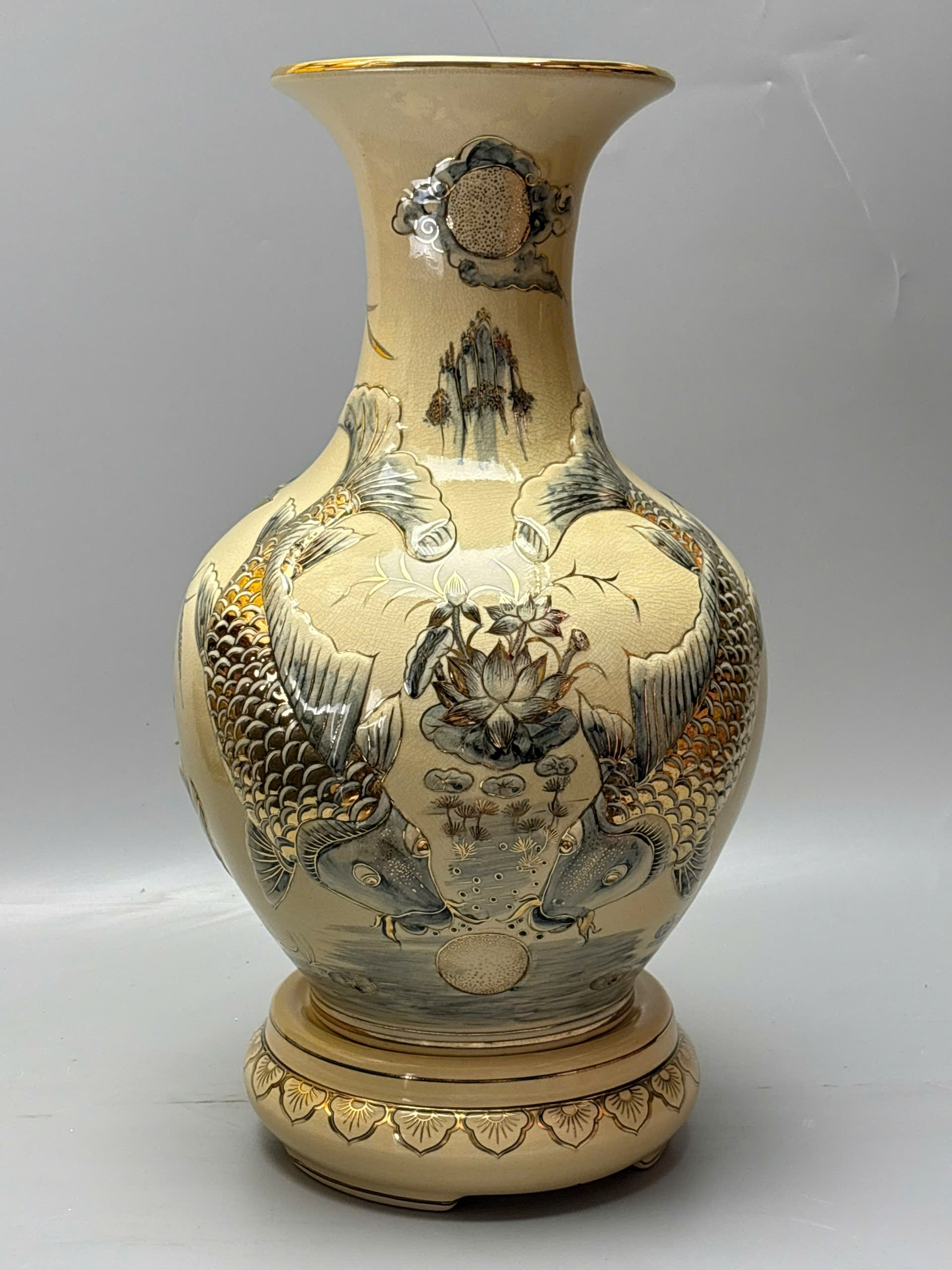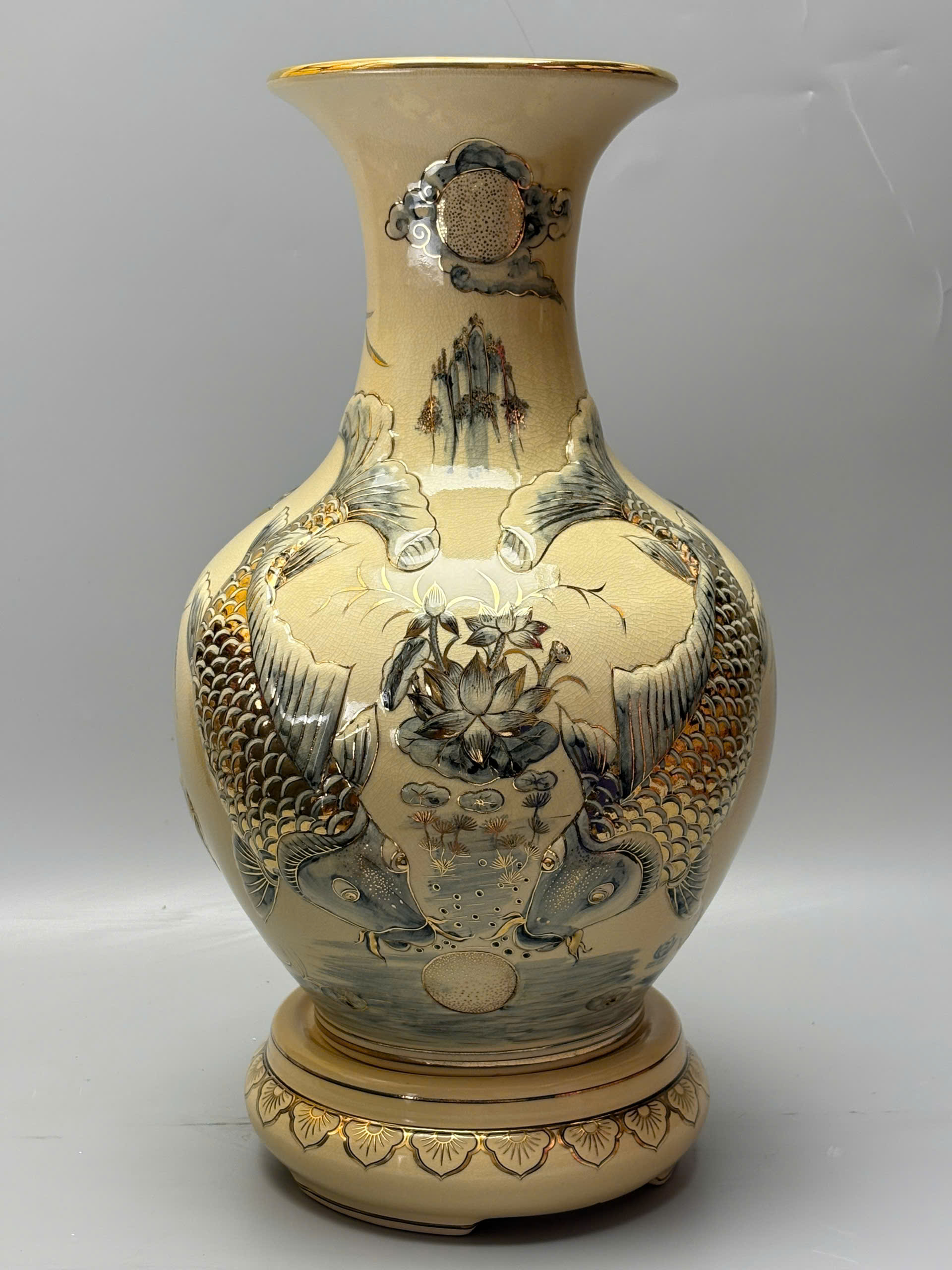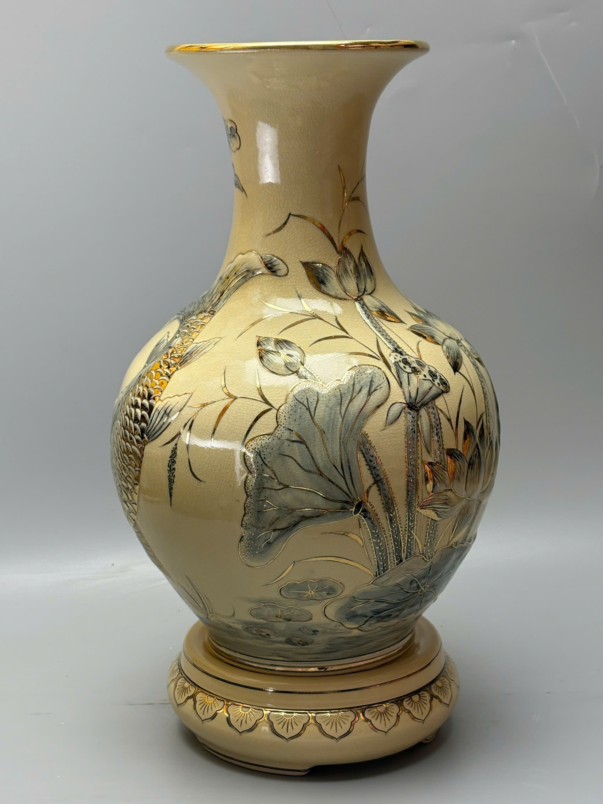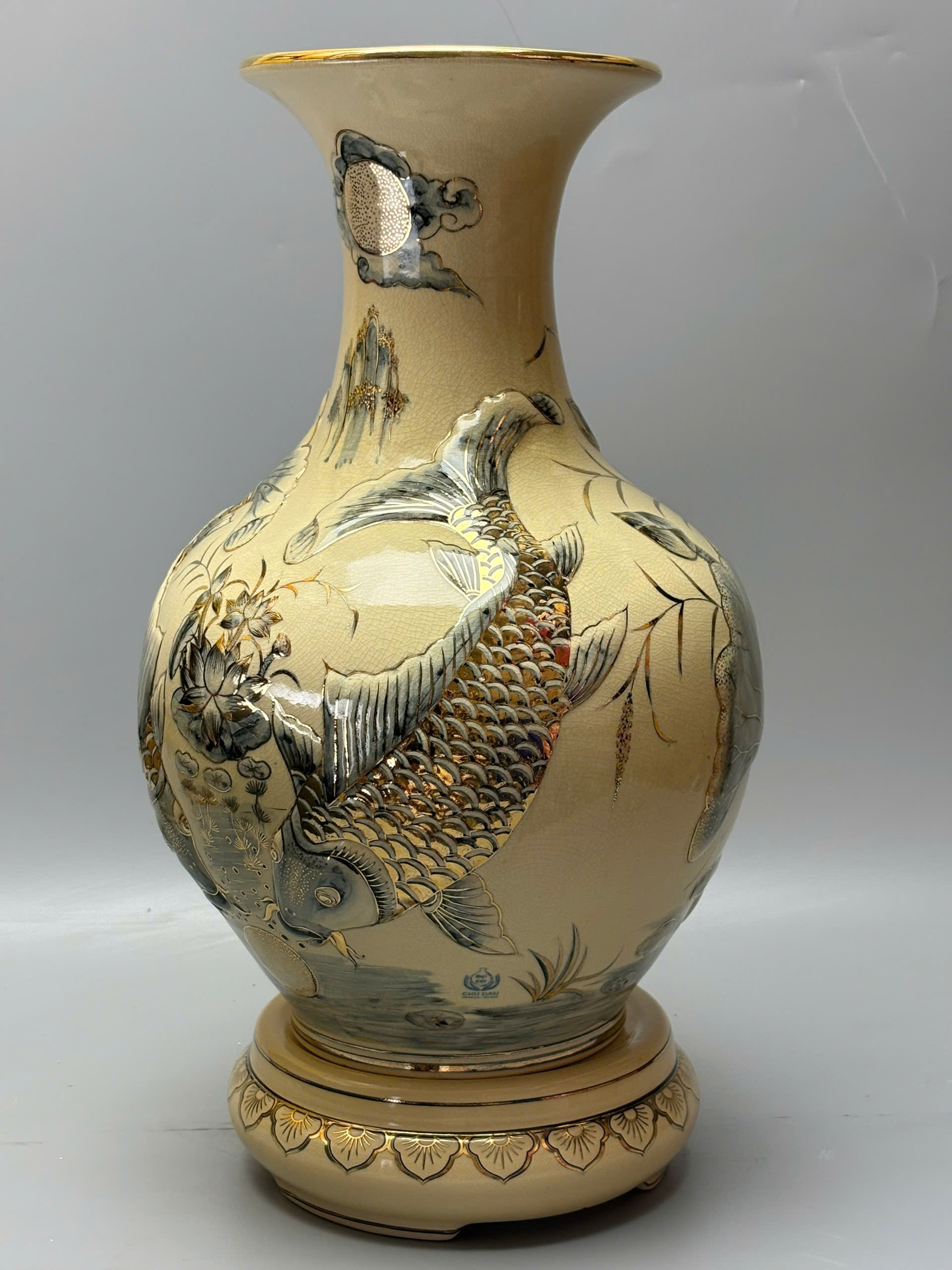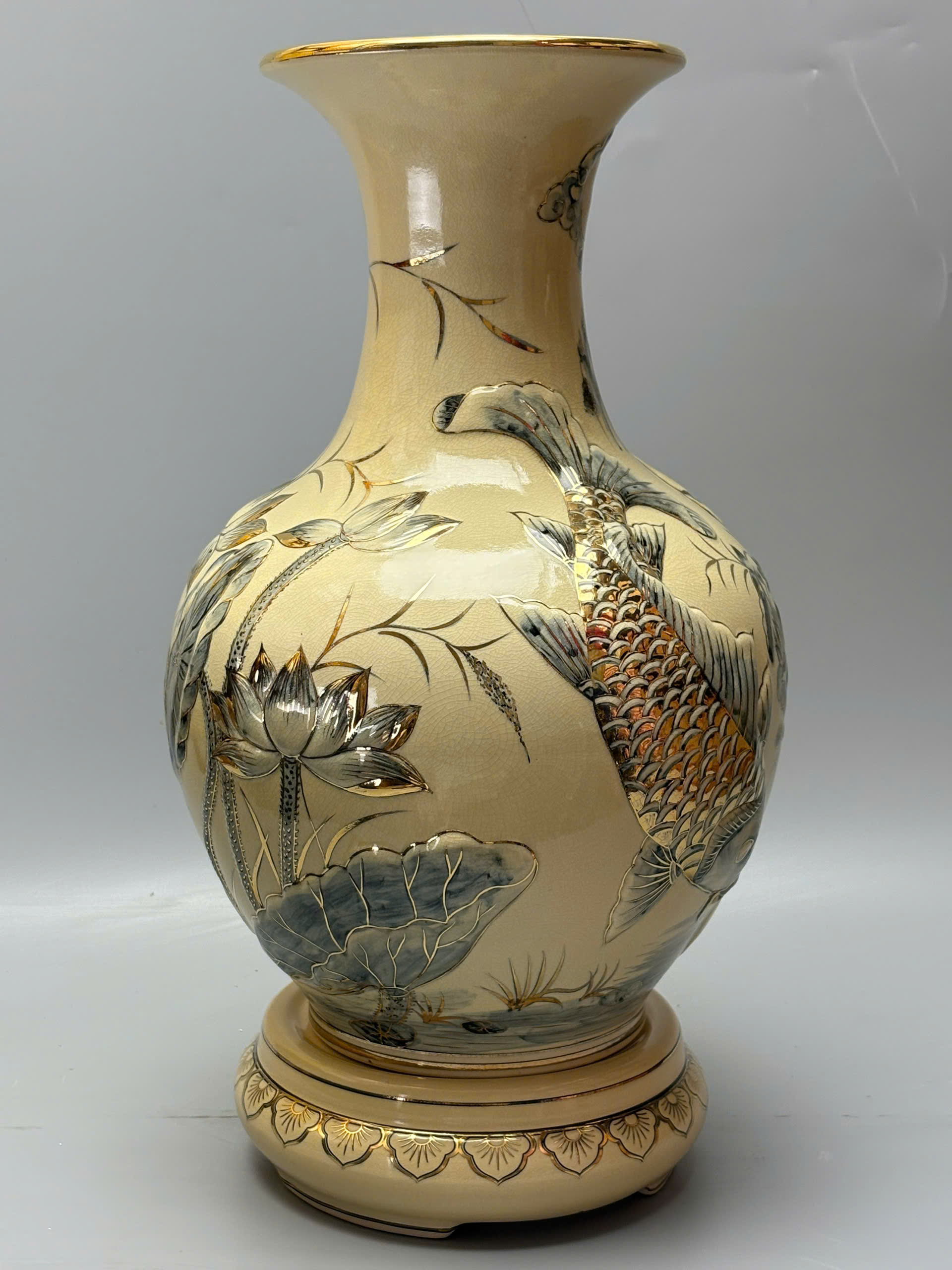 ✨ Bình Phú Quý Cá Chép Hoa Sen đắp nổi vẽ vàng 24K là một tuyệt phẩm gốm sứ phong thủy, kết hợp giữa nghệ thuật chế tác tinh xảo và biểu tượng tâm linh sâu sắc. Dưới đây là mô tả chi tiết: