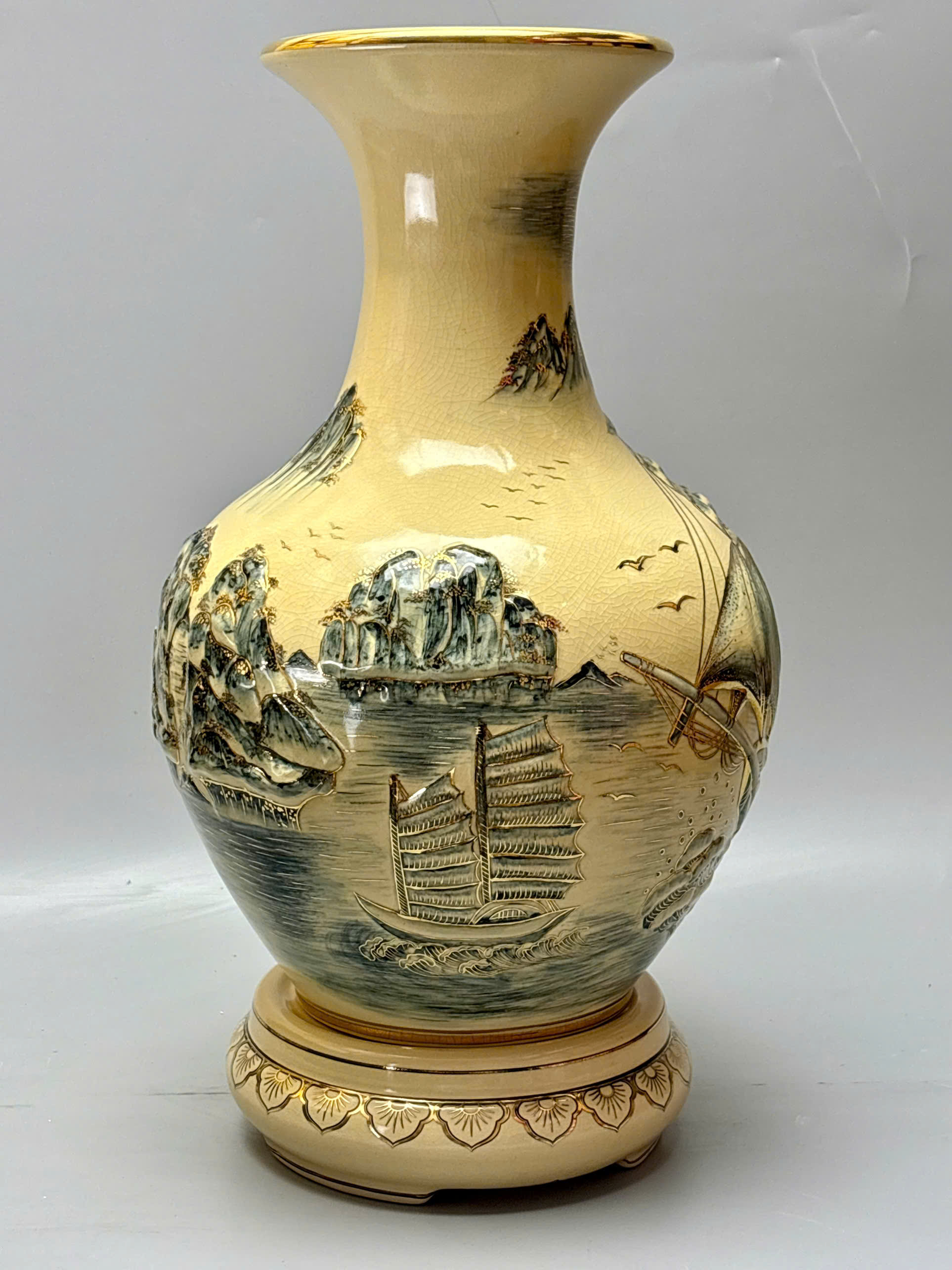 ✨ Bình Phú Quý “Thuận Buồm Xuôi Gió – Vịnh Hạ Long” cao 50cm đắp nổi vẽ vàng 24K là một tuyệt phẩm gốm phong thủy mang đậm dấu ấn văn hóa Việt Nam, kết hợp giữa nghệ thuật chế tác tinh xảo và biểu tượng may mắn.