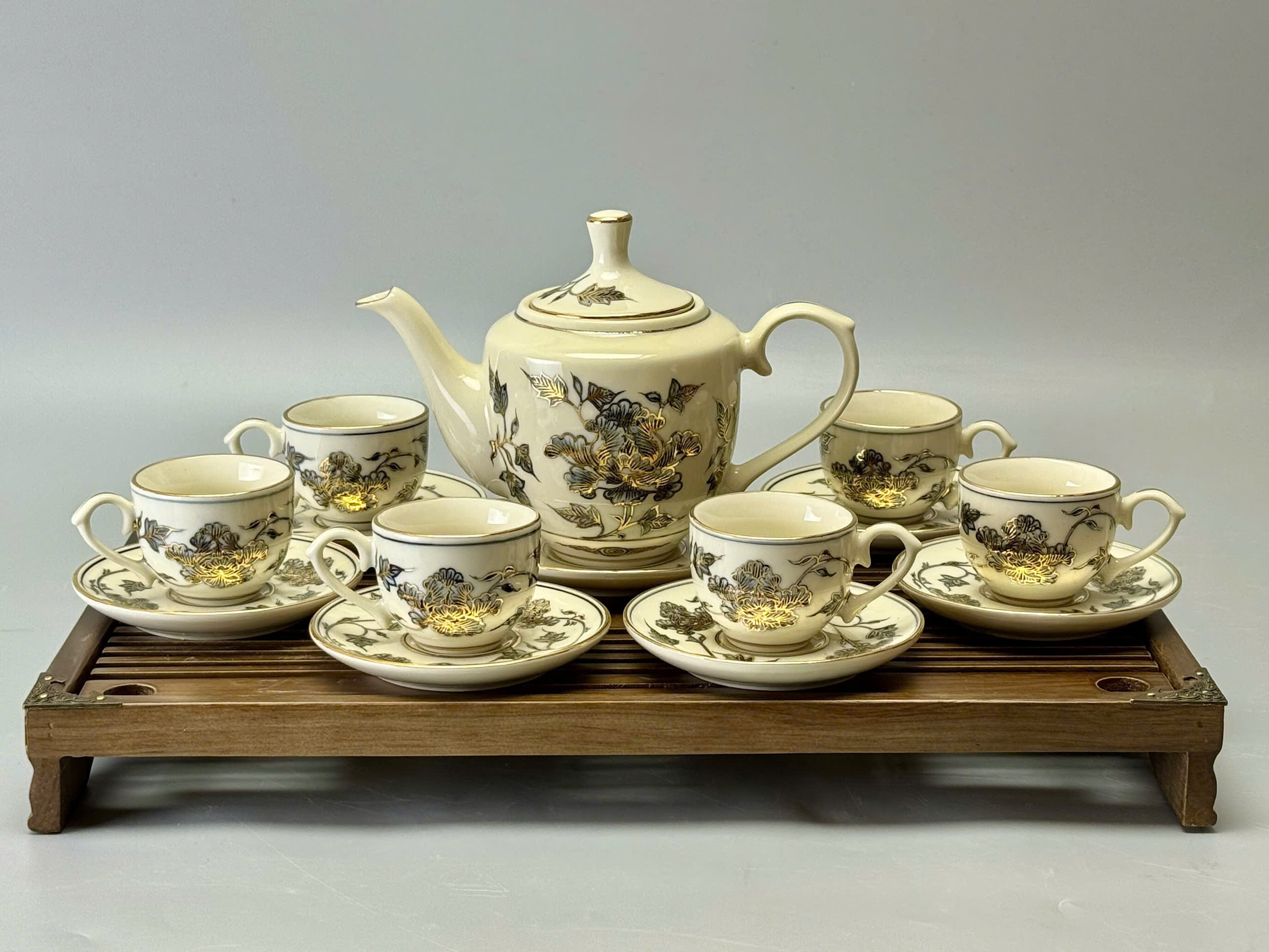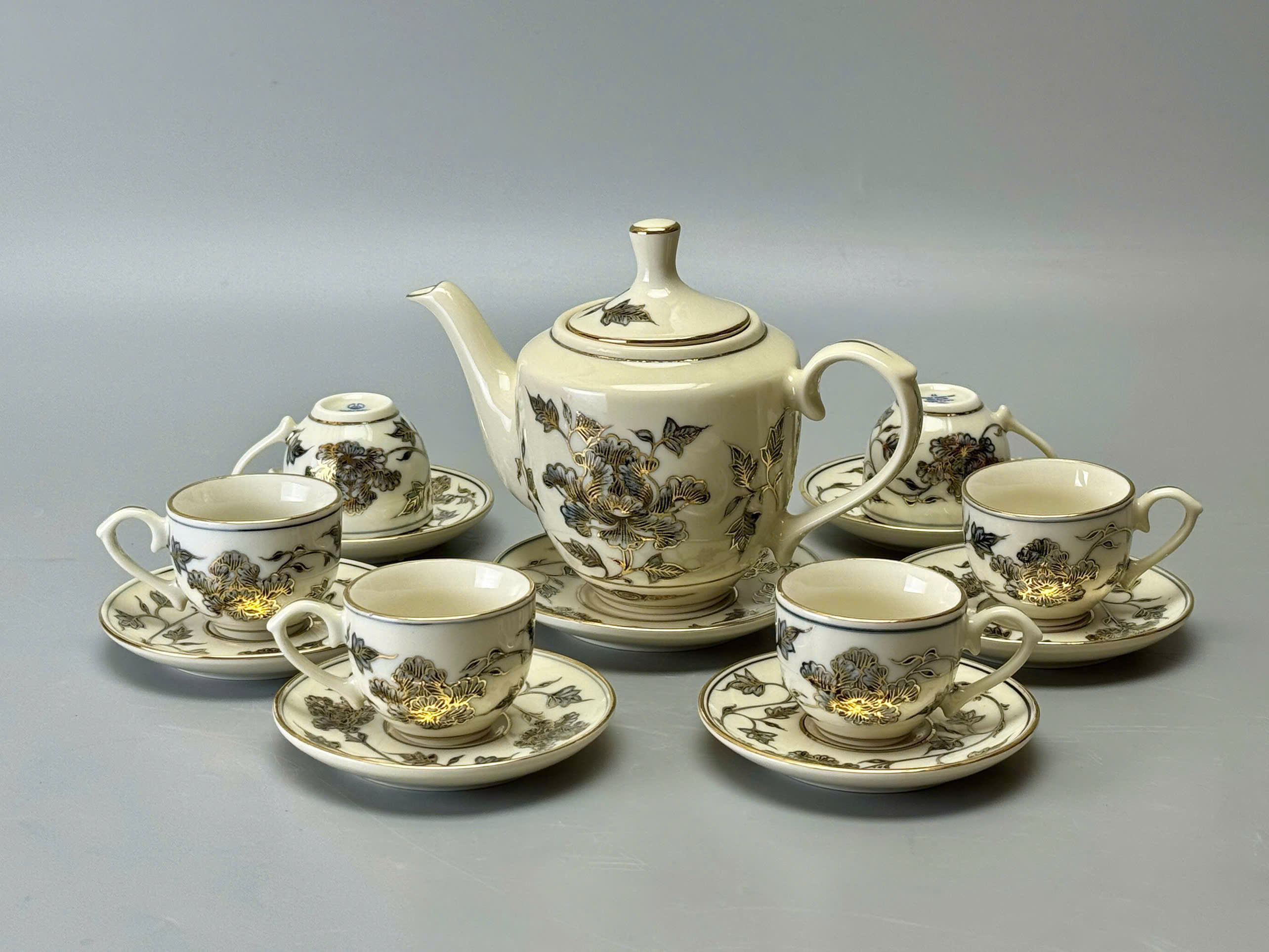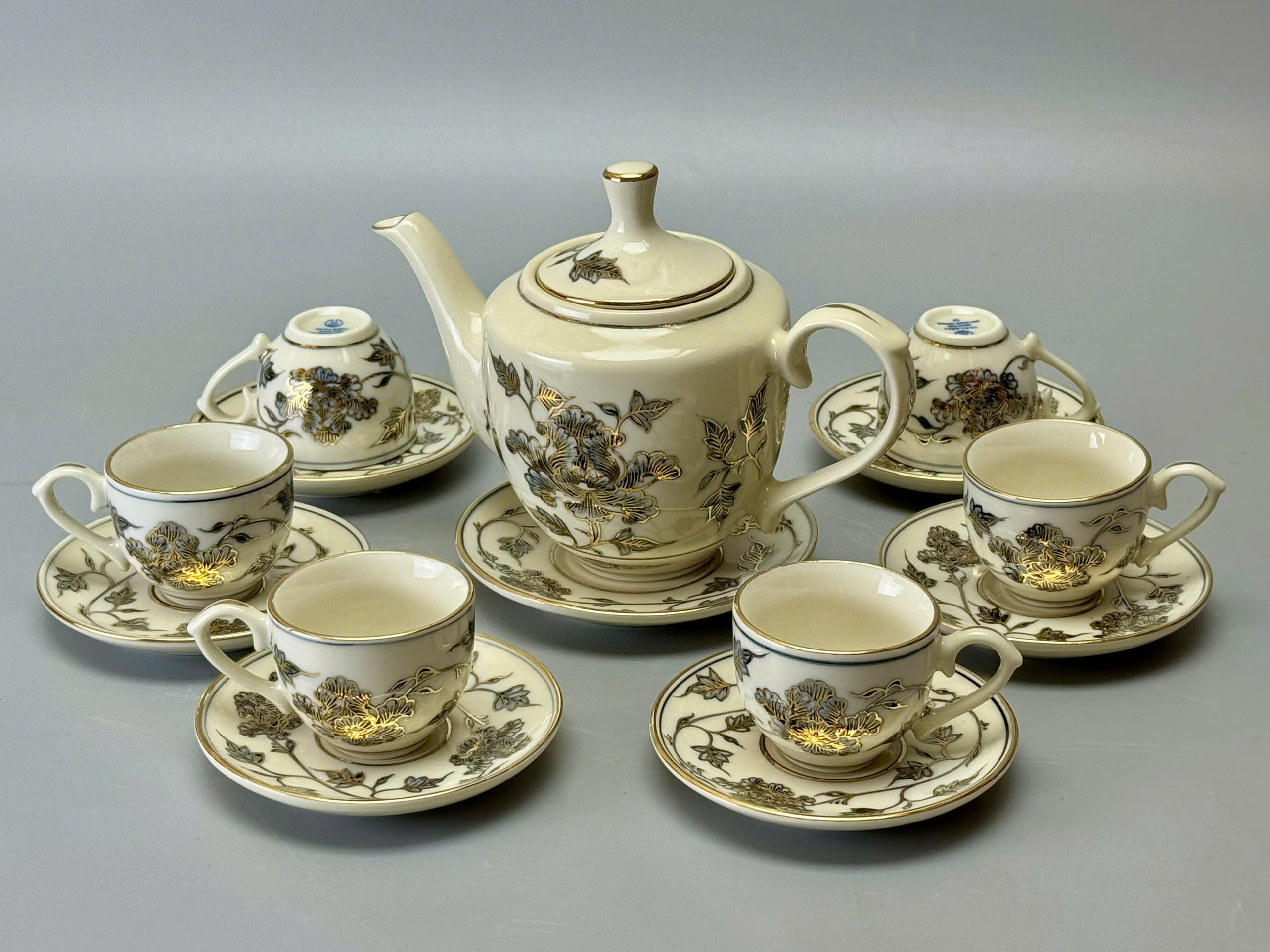 Bộ ấm chén hoa phù dung là một trong những dòng sản phẩm cao cấp của gốm Chu Đậu – nơi lưu giữ và phát triển nghệ thuật gốm truyền thống Việt Nam từ thế kỷ 13. Trên nền men trắng ngà thanh khiết, hình ảnh hoa phù dung – biểu tượng của sự thanh cao, quý phái và thoát tục – được vẽ tay bằng vàng thật 24K, tạo nên vẻ đẹp sang trọng, tinh tế và đầy giá trị nghệ thuật.