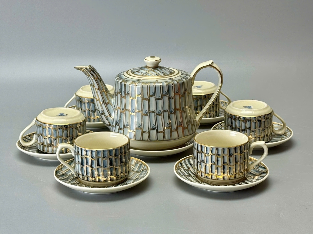 🎋 Bộ Ấm Chén Vuông Họa Tiết Trúc Vẽ Vàng Chu Đậu