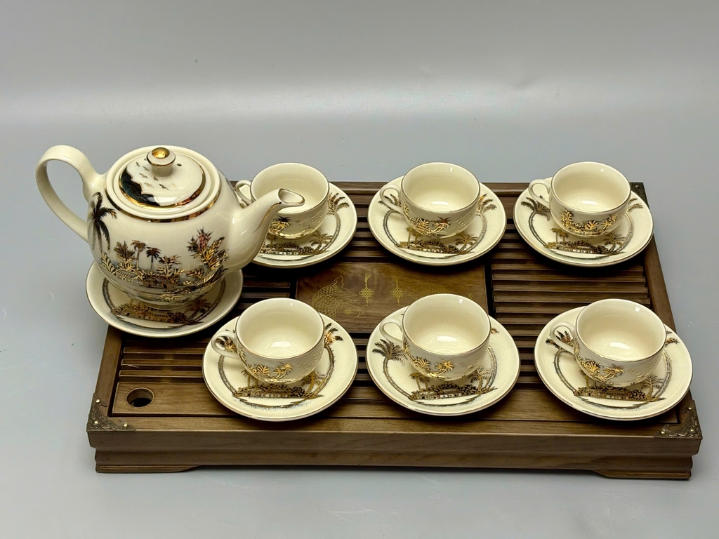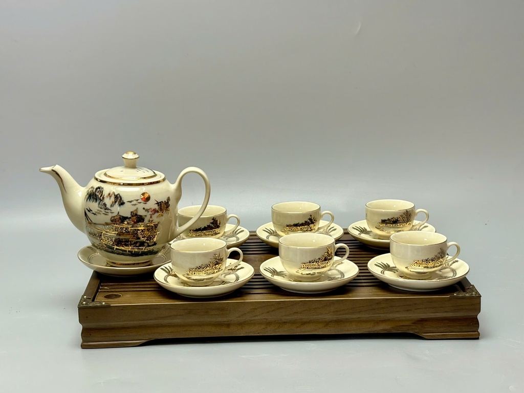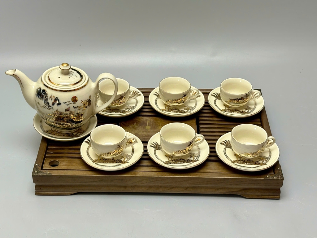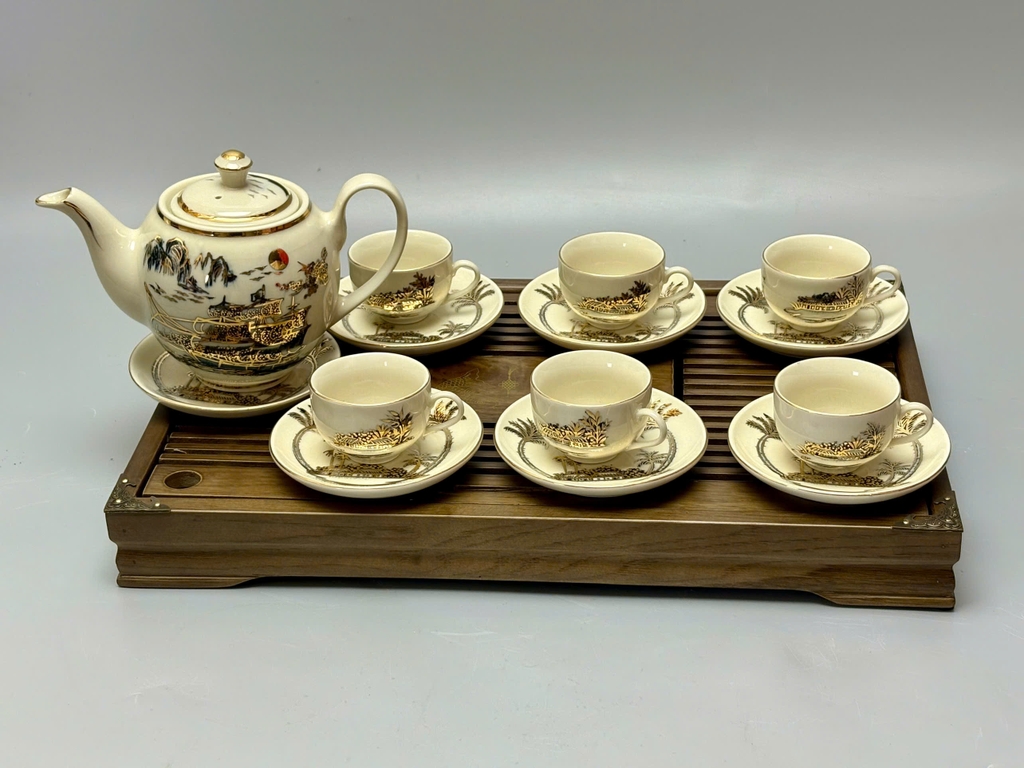 ⛵️ Bộ Ấm Trà Thuận Buồm Xuôi Gió & Làng Quê Chu Đậu Vẽ Vàng 24K