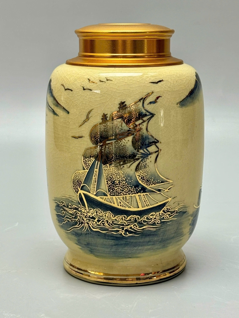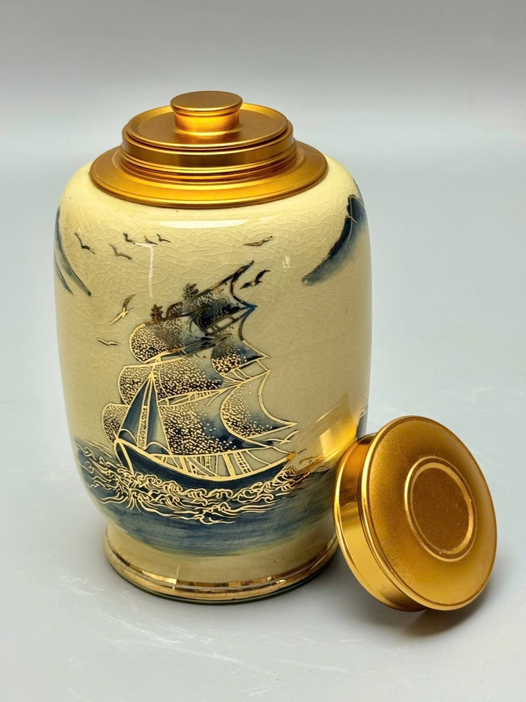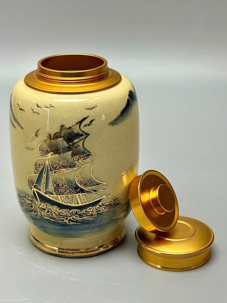🏺 Hũ Đựng Trà Thuận Buồm Xuôi Gió Gốm Chu Đậu Vẽ Vàng 24K – Biểu Tượng May Mắn và Thành Công