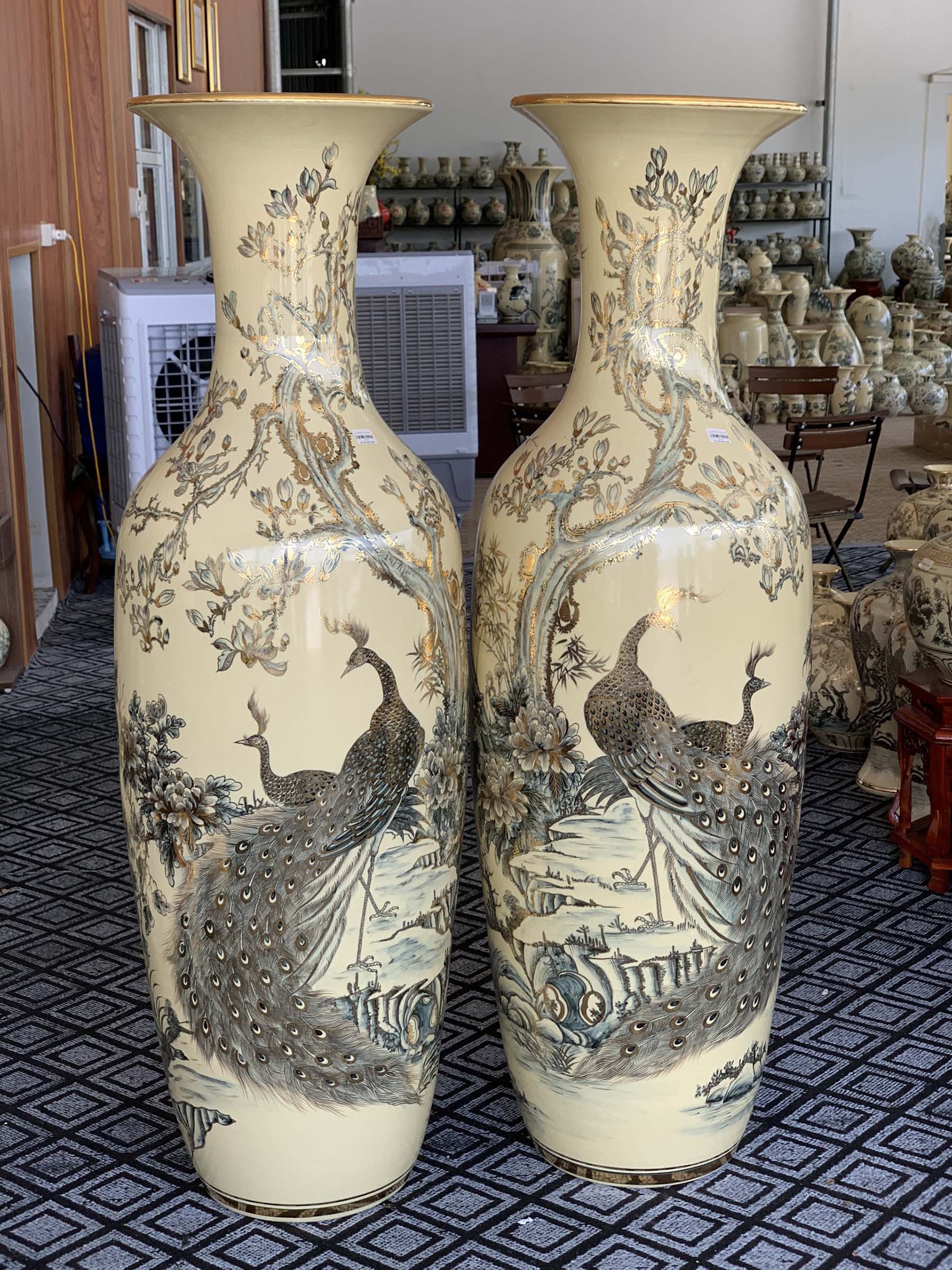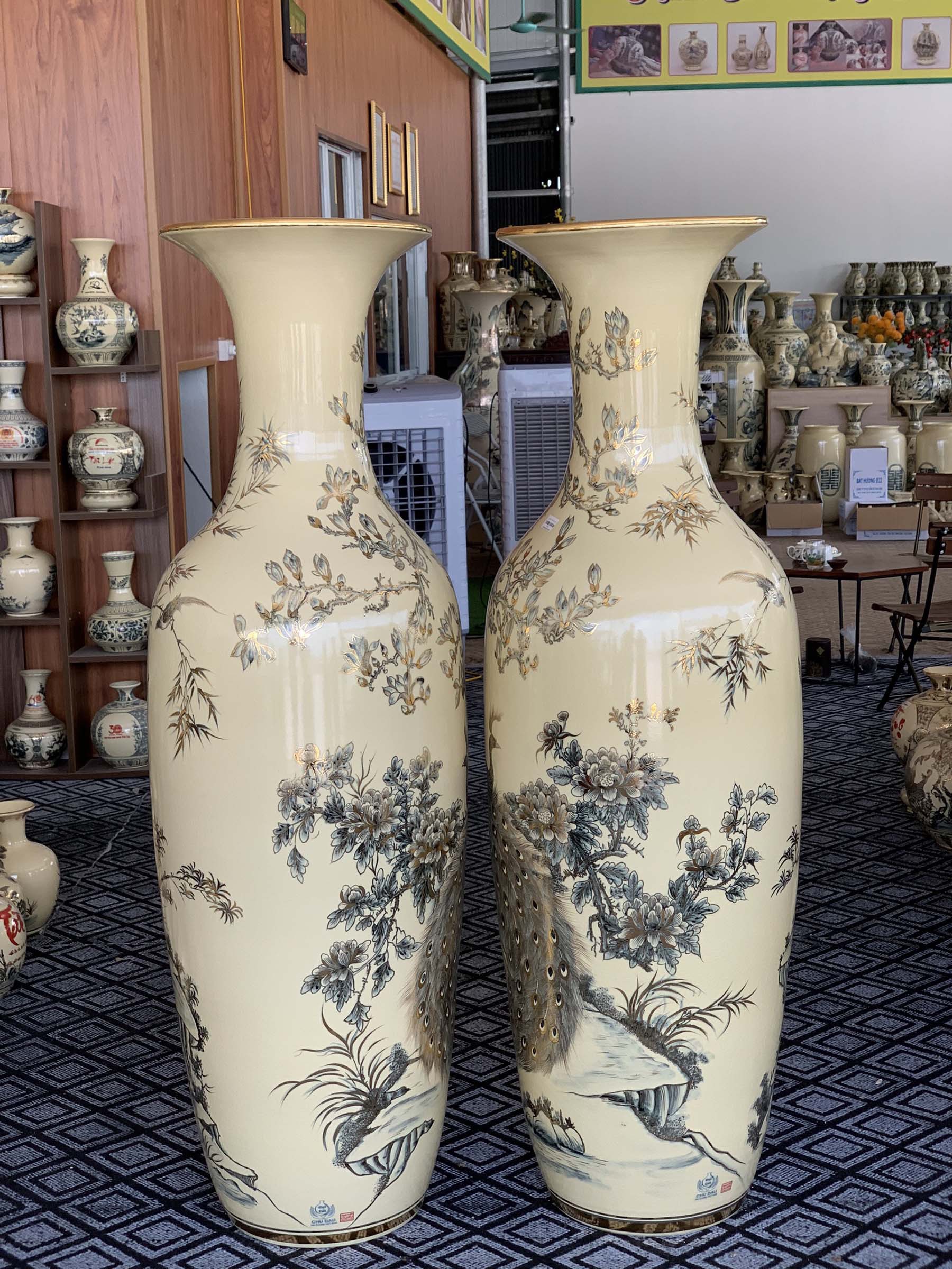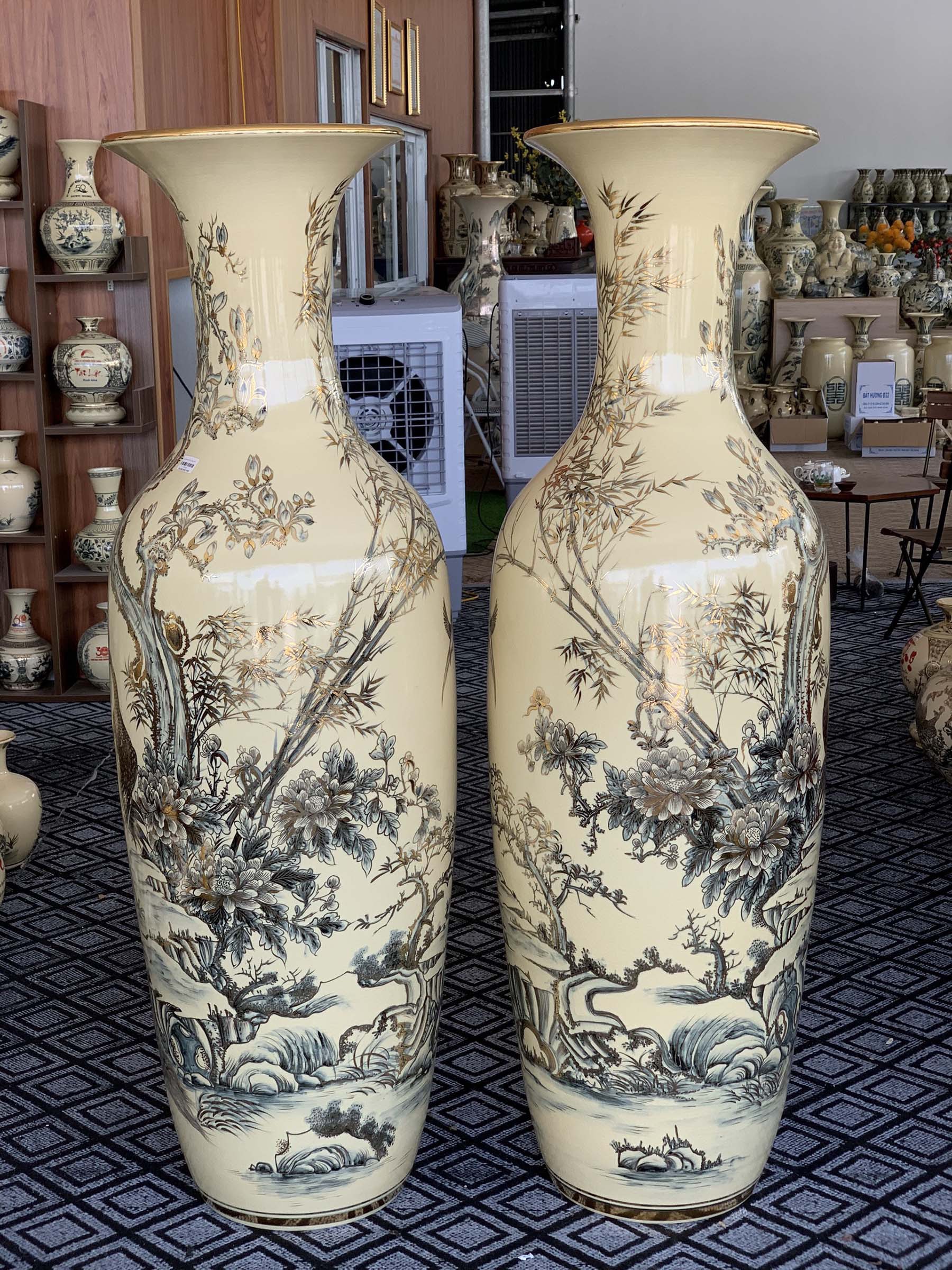 Lục Bình Vinh Hoa Phú Quý Cao 1,6m Gốm Chu Đậu Vẽ Vàng
