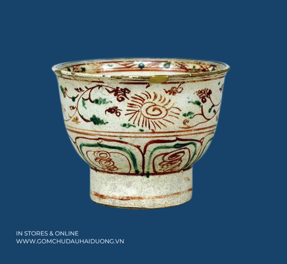 Tháng 10-2013, tôi ghé thăm Bảo tàng Nghệ thuật Tokugawa ở Nagoya, Nhật Bản. Đây là nơi trưng bày những bộ sưu tập bát uống trà chân cao lừng danh, men tam thái, xuất xứ từ Chu Đậu. Trong số đó đáng chú ý là chiếc bát thuộc sở hữu của Tướng quân Tokugawa Ieyasu từ năm 1616, có hoa văn vẽ bằng men đỏ và men lục, thành ngoài vẽ hoa văn hình cánh sen và hoa cúc xen kẻ với một nhánh cây bạch quả, đáy phủ men nâu.